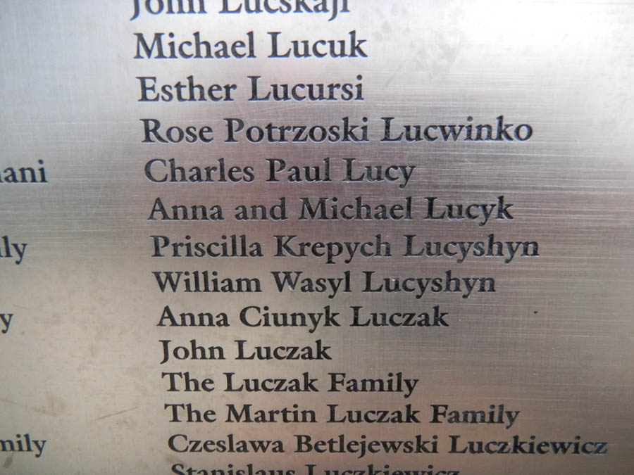 The "Wall of Honor" on Ellis Island, and the panel with my great-grandparents' names, William and Priscilla Lucyshyn: