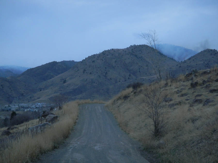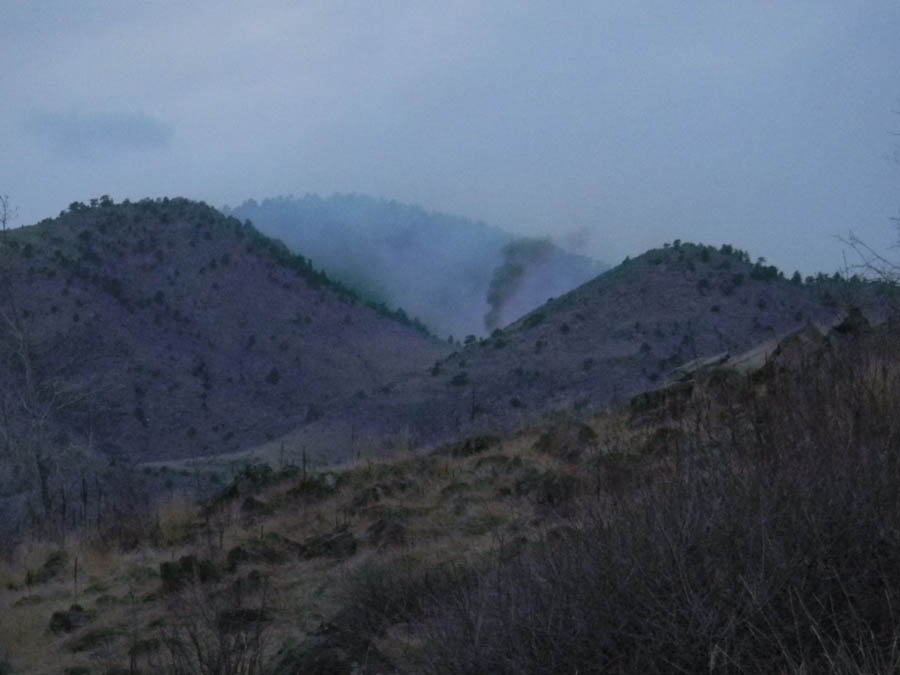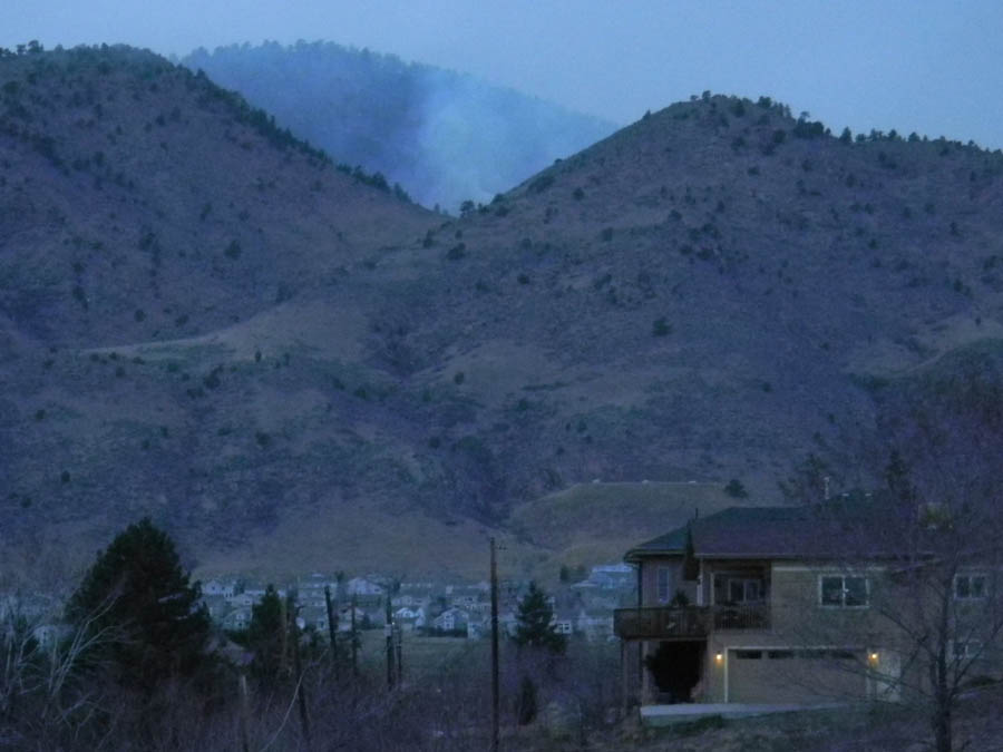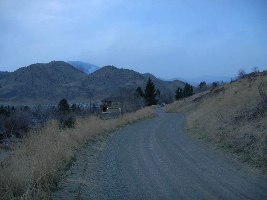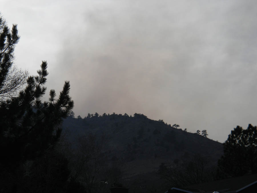 This fire started on Sunday, March 20th, near Mt. Galbraith, which is between where 6th Avenue cuts into the mountains and Golden Gate Canyon. Mike and I are assuming it was due to manmade causes, because it has been so incredibly dry this year and there weren't any thunderstorms, lightning, etc, in the area. With how dry everything is (only got ~1/3 our normal snowfall), it wouldn't take much...