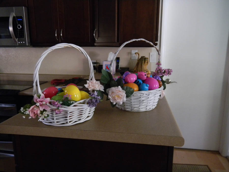 The Easter eggs are ready for battle - in the baskets that Mike's mom made for our wedding.