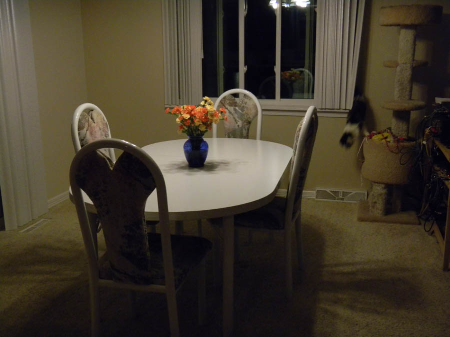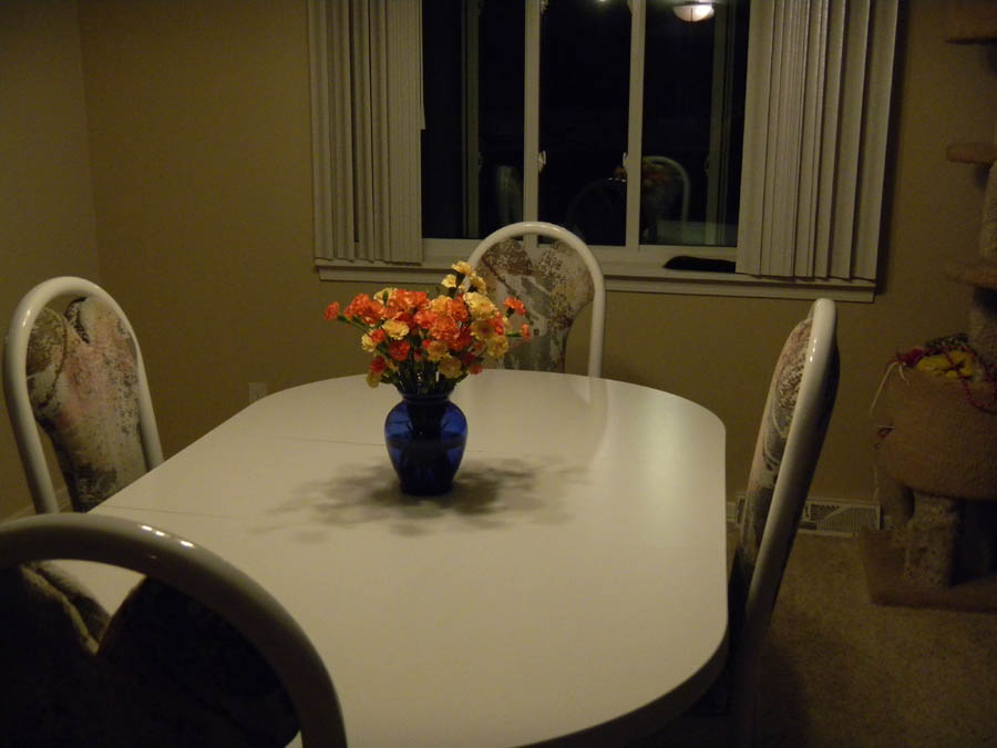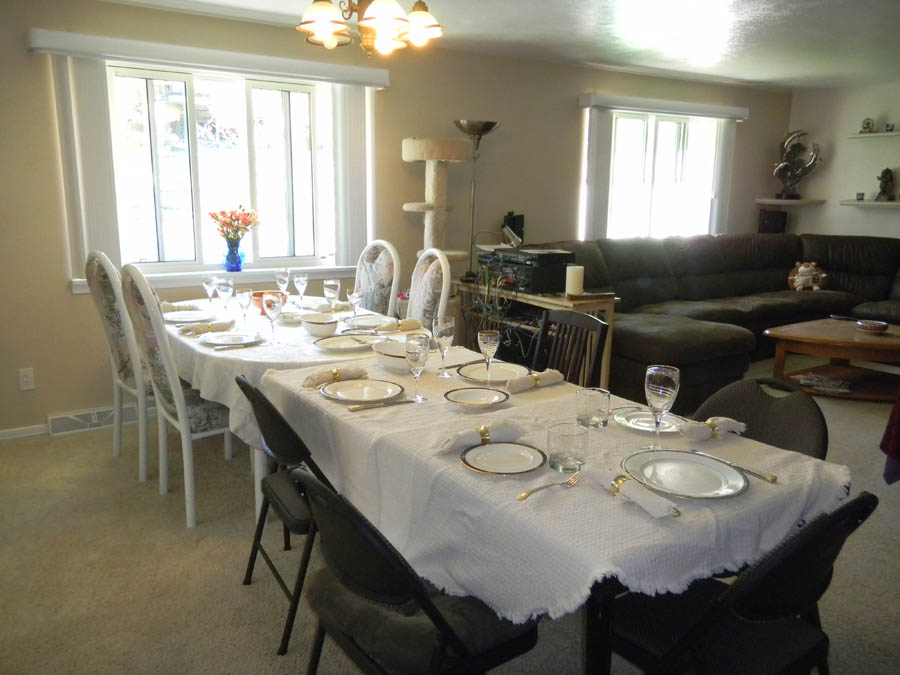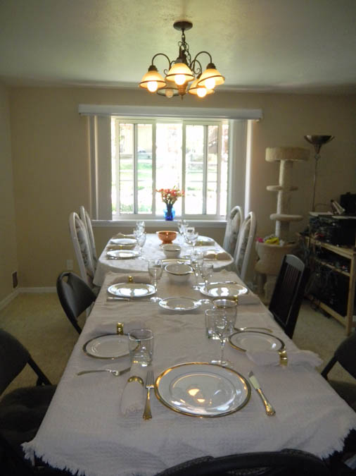 Table is set for dinner, using our wedding china.