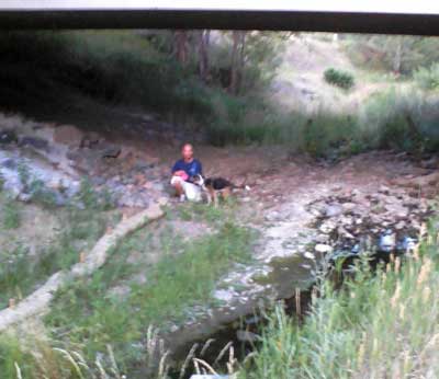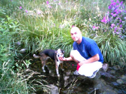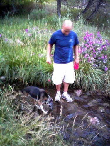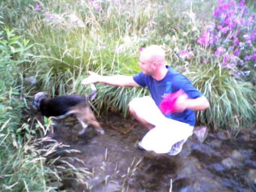 My parents and brother came to visit us in July. Here's my bro walking with Jazz in Tucker Gulch: