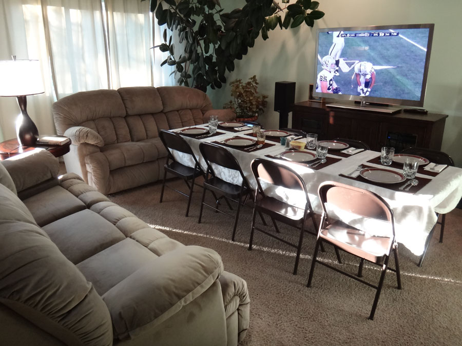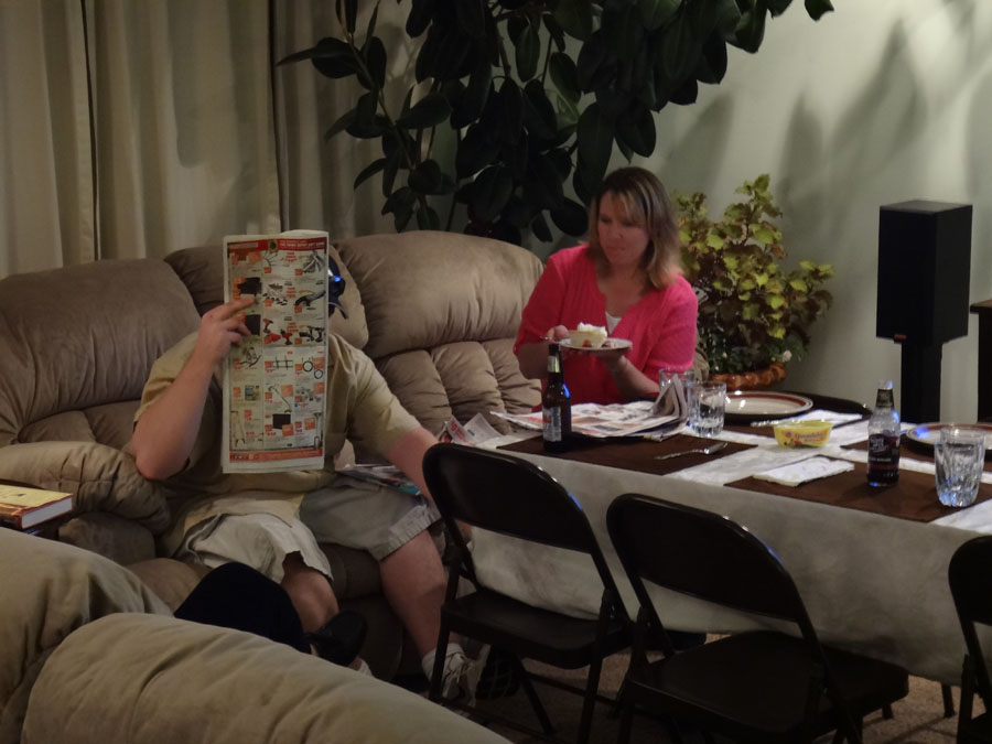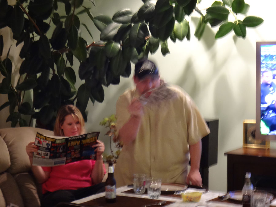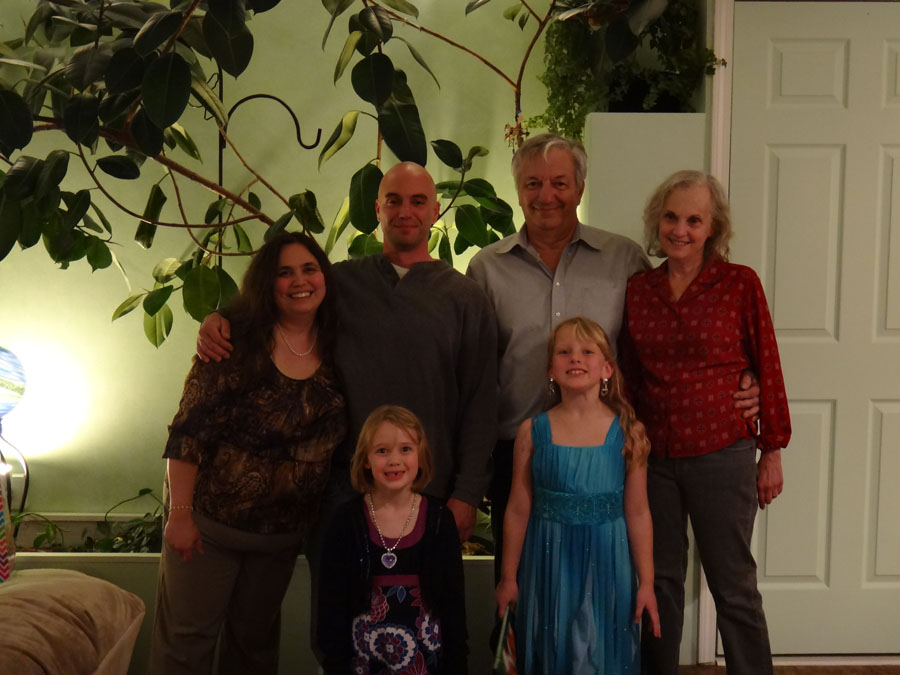 From left to right on the couch: Mike's sister, Rannae; my dad, Tony; Rannae's hubby, Rob; my bro, Mike