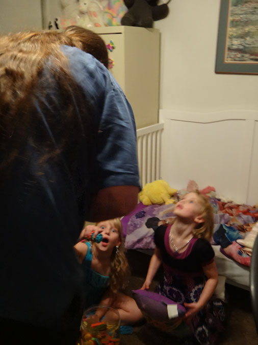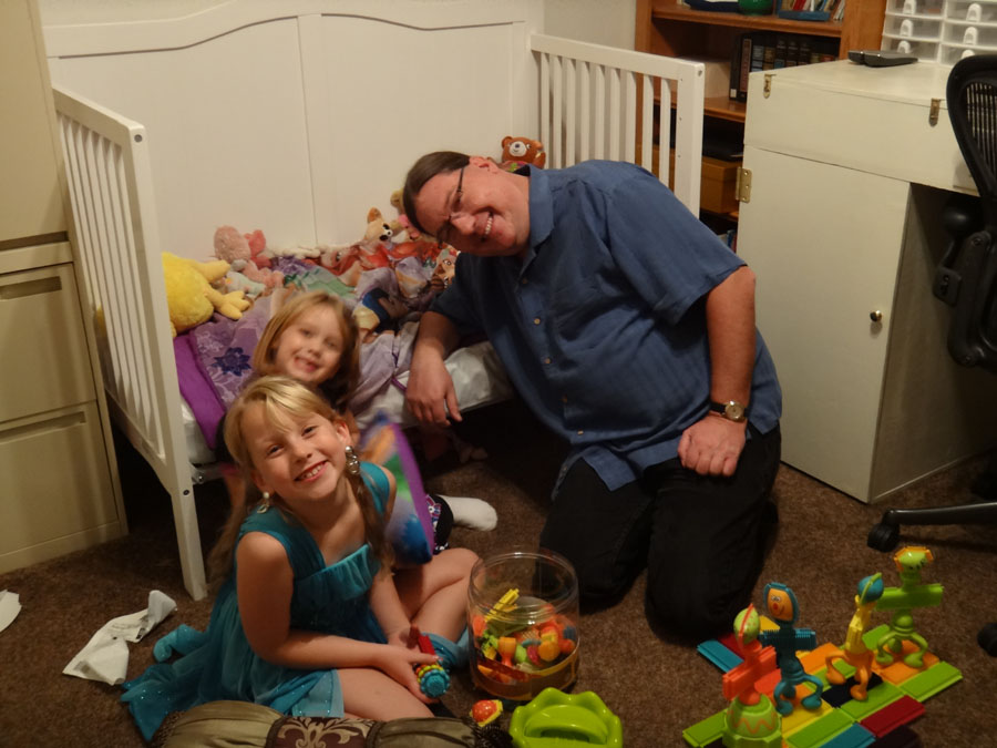Mike playing with Maddie and Val (Rannae &Rob's daughters) in what was once his bedroom.