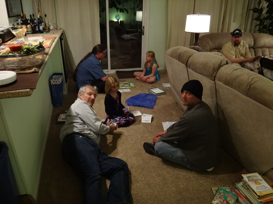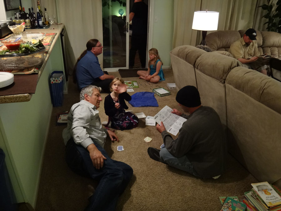 Board games! Mike, Maddie, Val, my dad, and my bro:
