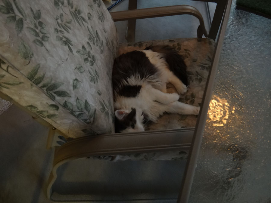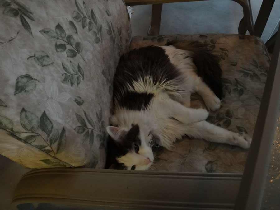 Chloe was relaxing on the patio.