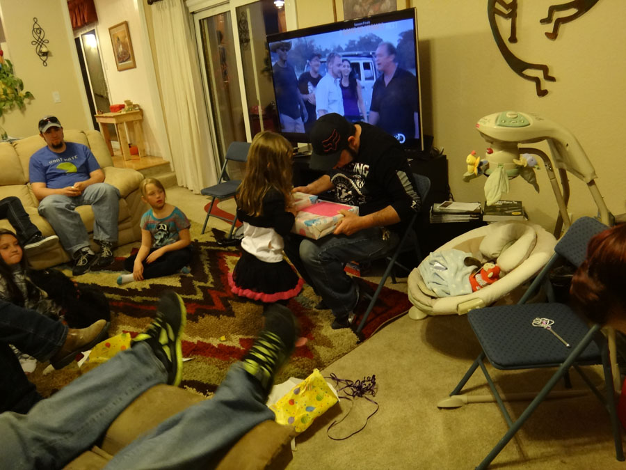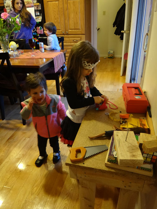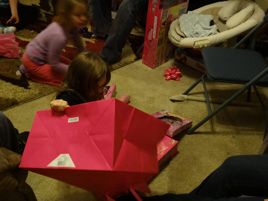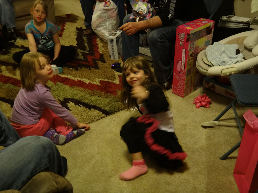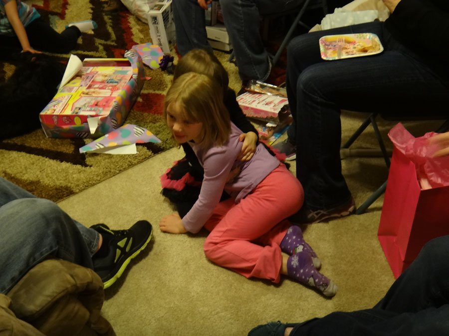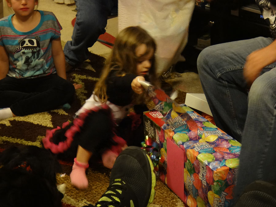 house (her grandpa, Mark, is Mike's Dad's brother). Here's the guest of honor - not sure what she was fussing with, but it was serious business.