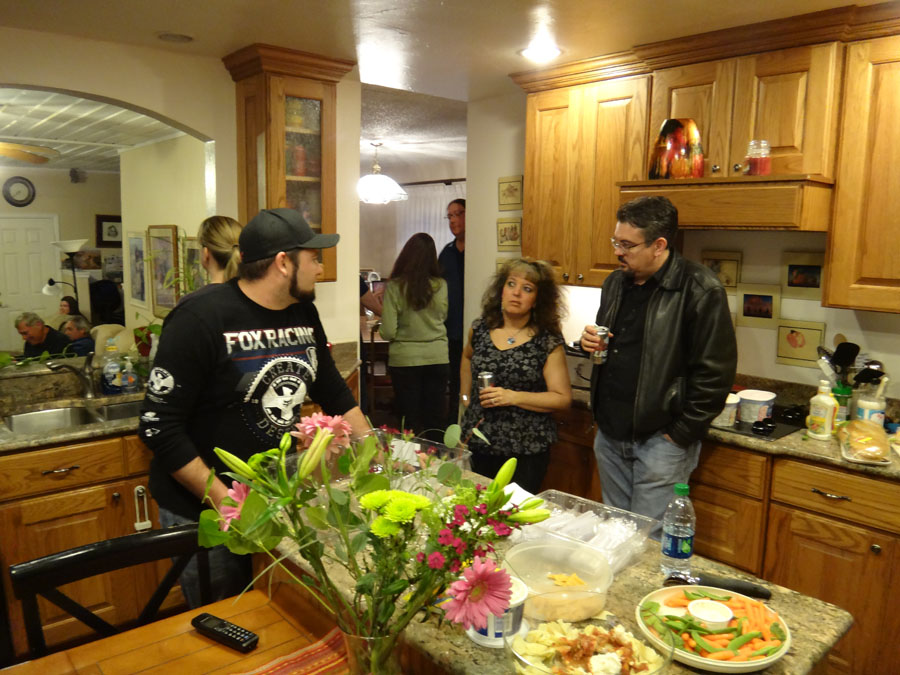 Rob talking with Bella's sister, Roberta, and her fiancèe, Dimetheus. Not sure what Rob said, but his aunt is giving him quite a look!
