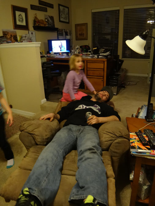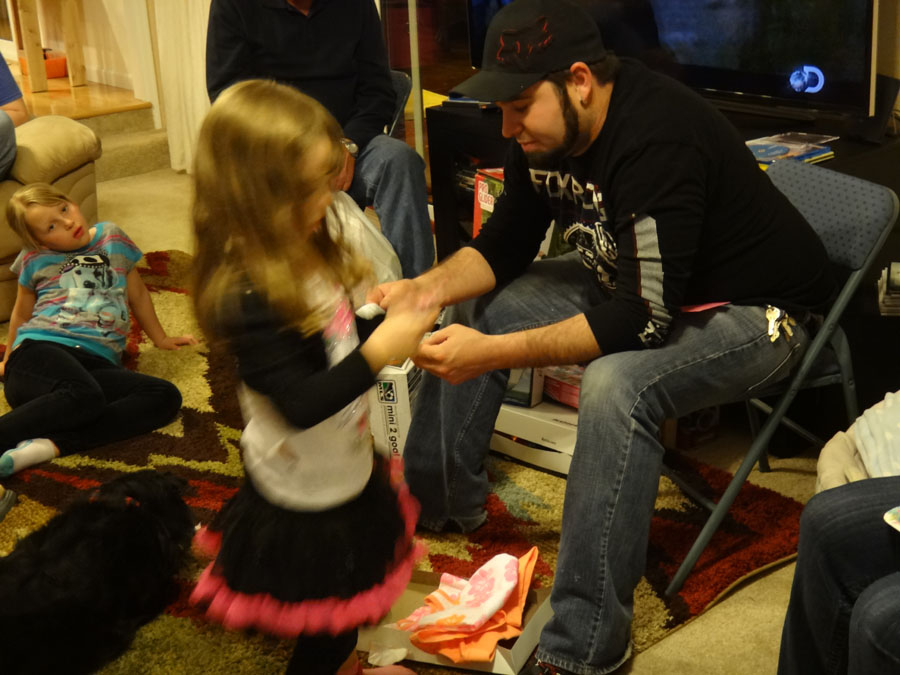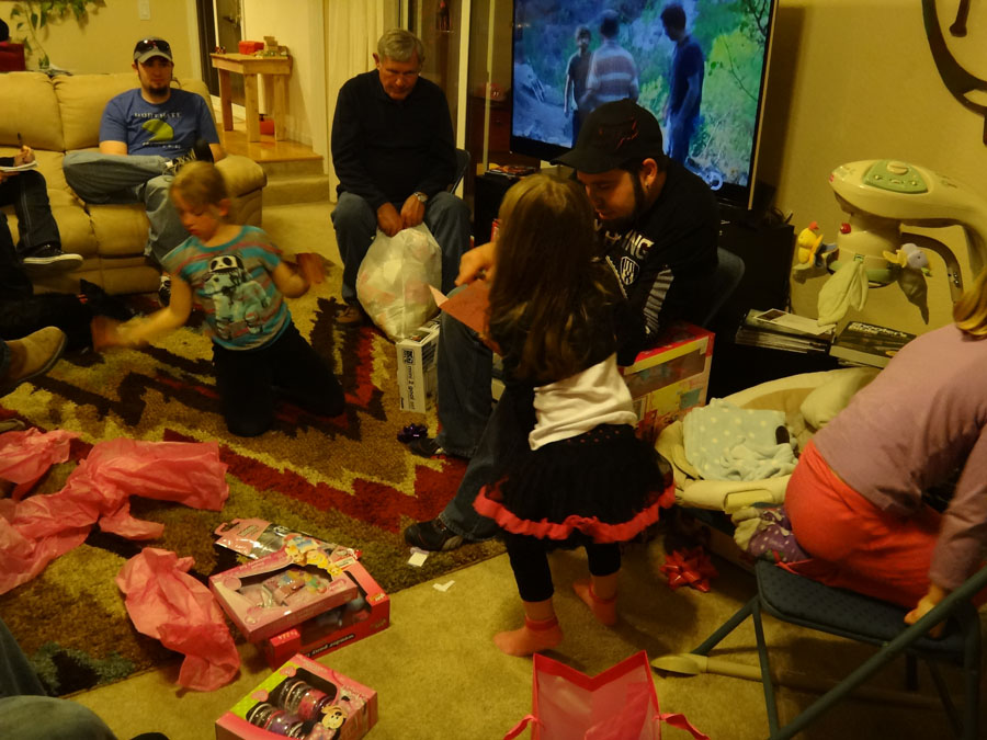 Clara was moving at hyperspace speed, and her poor dad (Rob Sanders) was trying to slow her down. He was just left behind holding gifts...