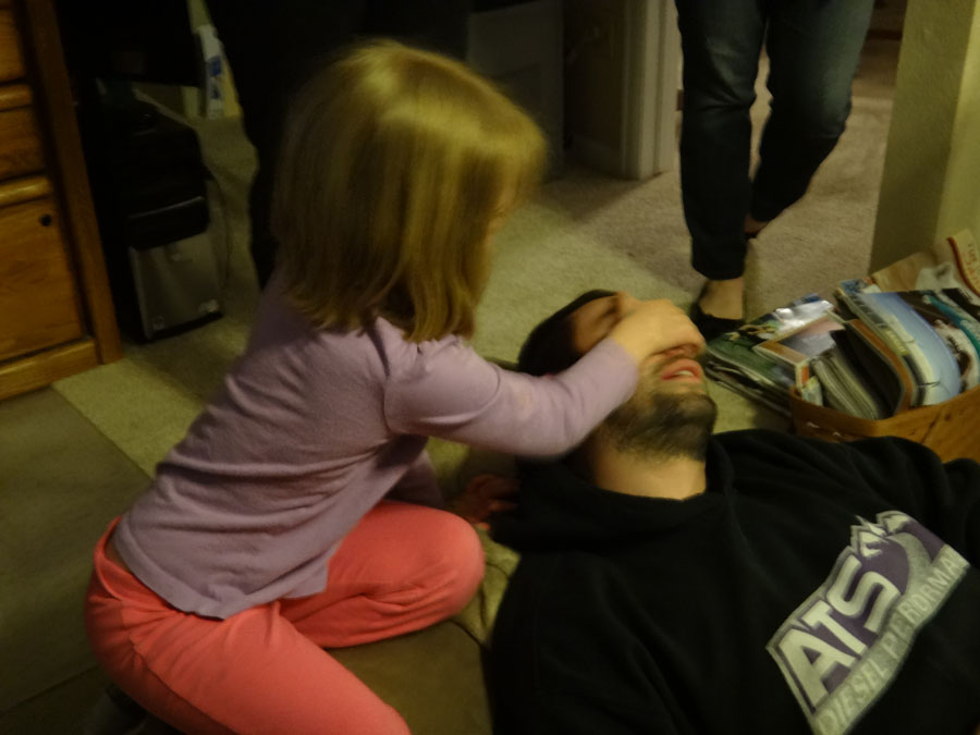 Clara can read! Her dad had been reading the cards to her, but for this one, she grabbed it and read it.