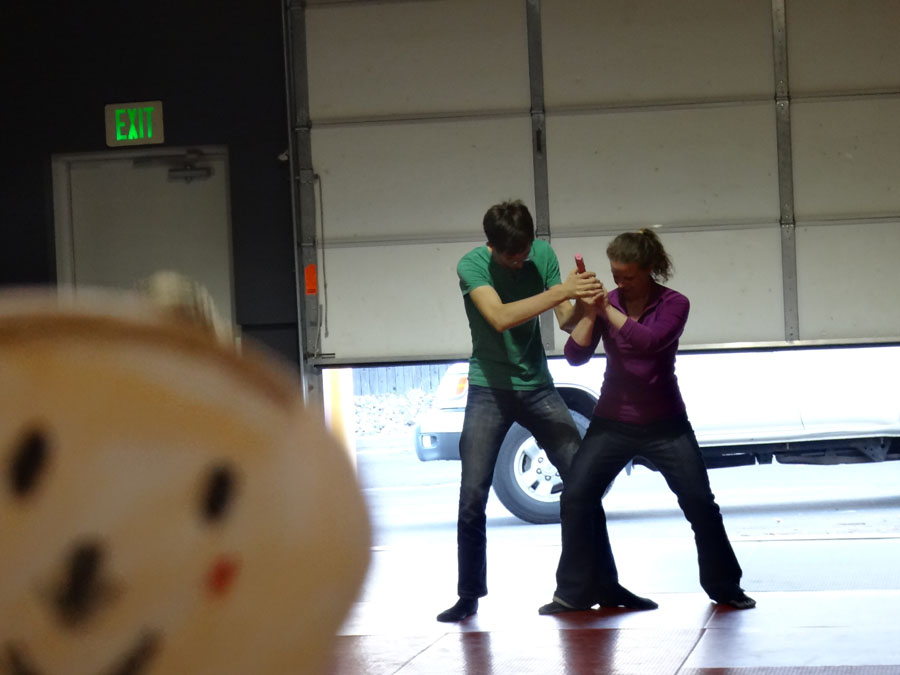 The class got to request a topic for today - they asked about car jackings. Here we are in back of the dojo with Diana's car.