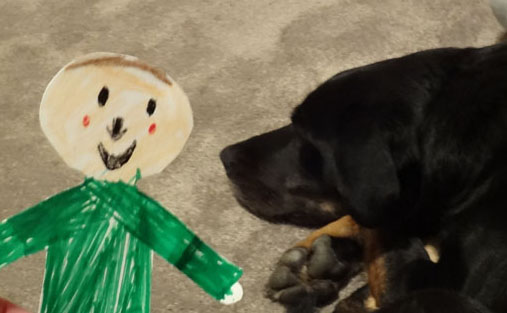 Here he is with my brother, Mike Rawluk, and my brother's dog, Abby.