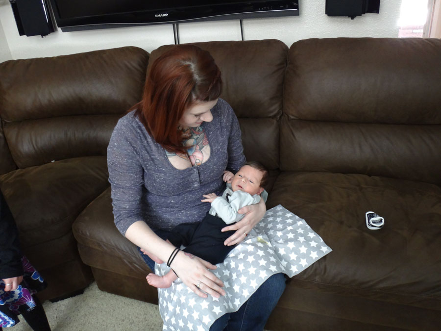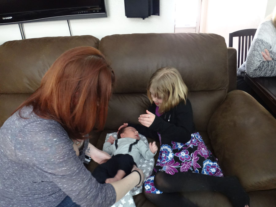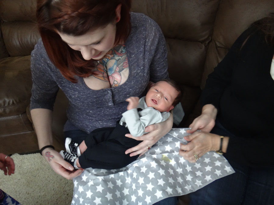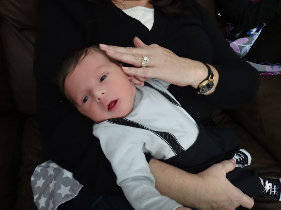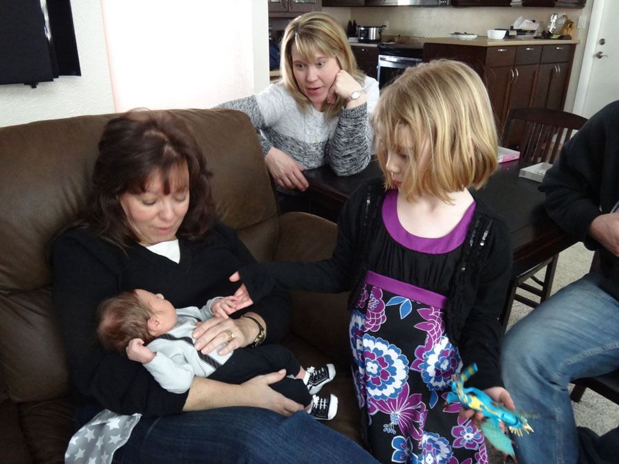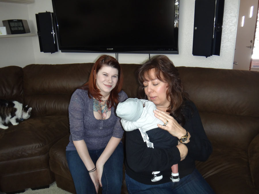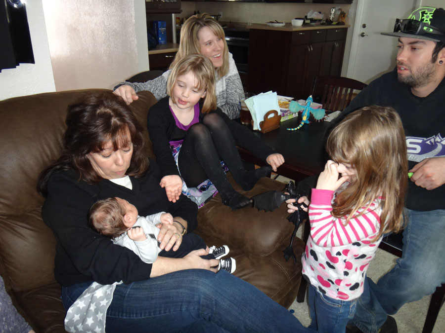 Bella holding Troy, with Valerie, Rannae, Mark (Uncle Mark's son, Troy's dad), and Clara.