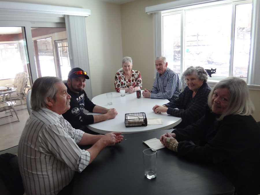 From left to right: Mike's Uncle Mark (dad's brother, Troy's grandpa), Rob (Mark's son), Nancy Kerbaugh (Mike's mom's cousin's wife),