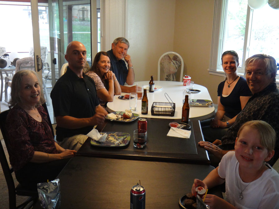 From left to right: my mom (Linda Rawluk), my bro (Mike Rawluk), my hubby's mom (Gwenn Sanders), his dad (Terry Sanders), Diana Mann, my dad (Tony Rawluk), and our niece (Madeline Lyon).