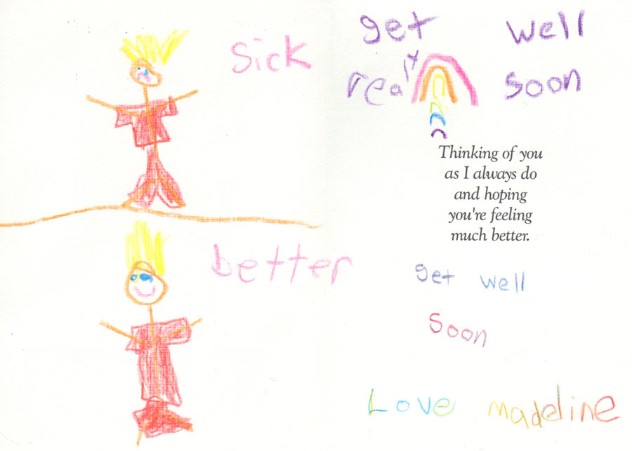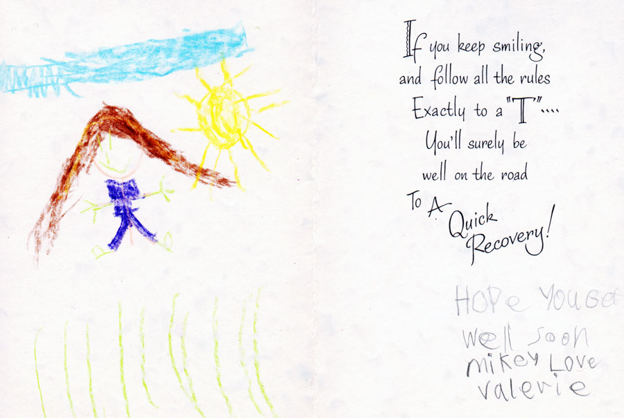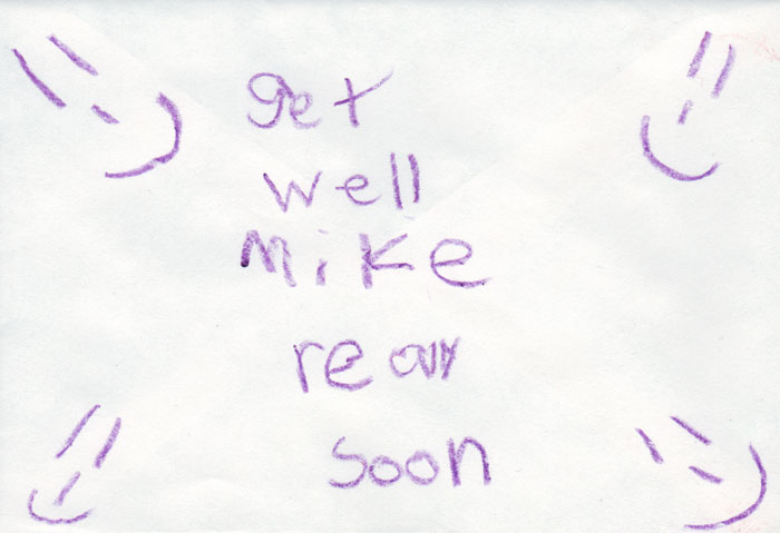 worried about him and made cute cards with get-well wishes. Mike liked that he was so thin in the cards...to their credit,