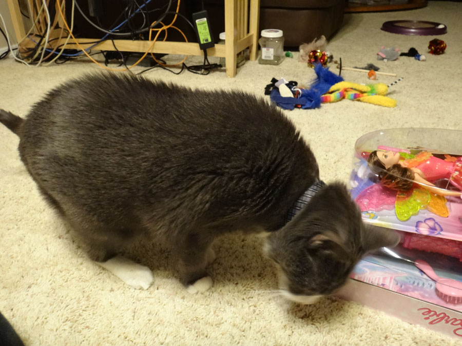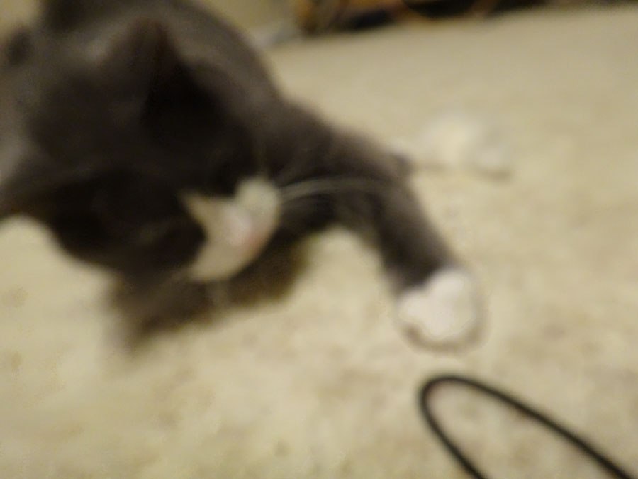playing with the camera string. Muggins is very quiet and reserved in his games, but he