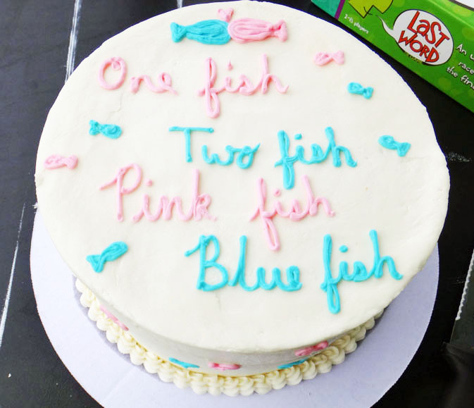 told their friend, Rachel, the gender, and she baked a lovely gender-reveal cake. Inside, there was something