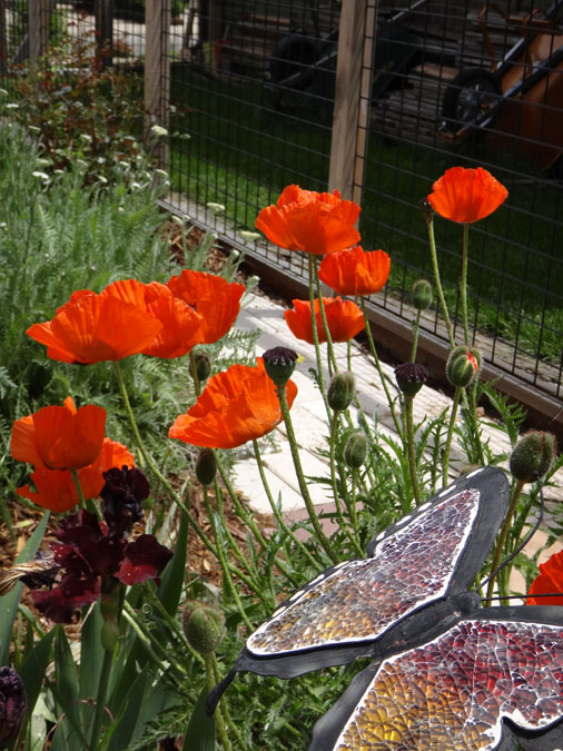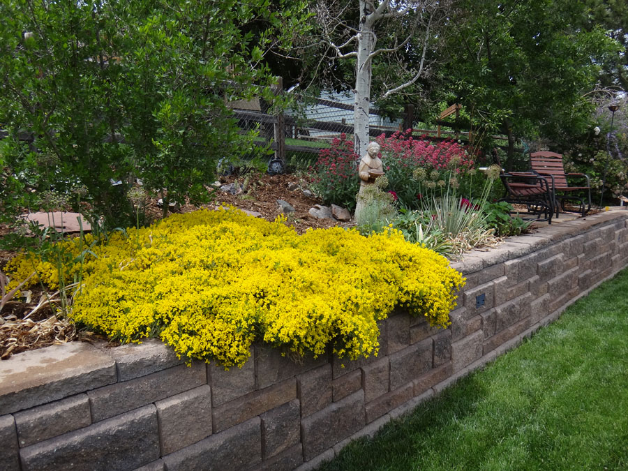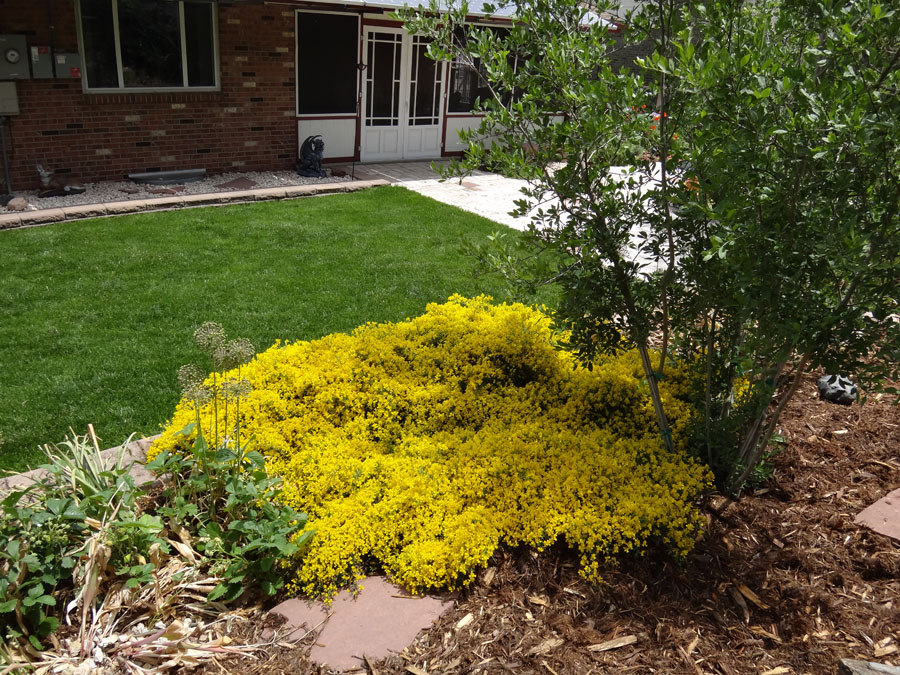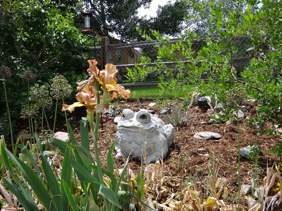 The hardy dwarf broom is in bloom! Super Toad and one of the irises that don't care: