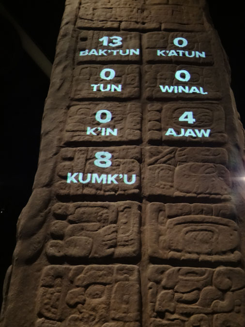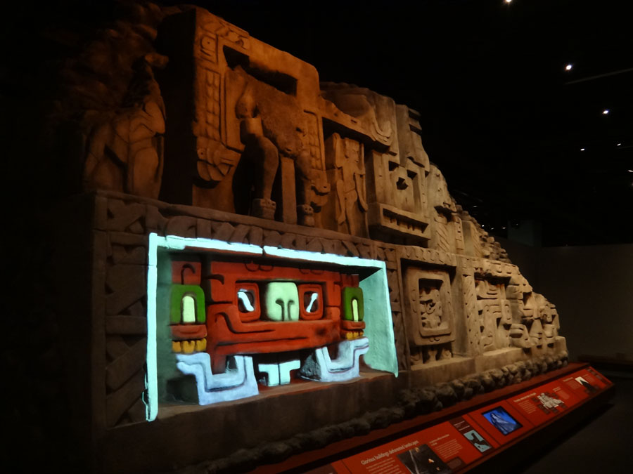They overlaid writings and shapes in light on the stone column to make it easier to find specific features