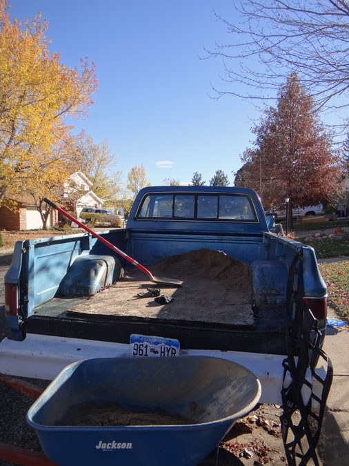 While I was at work in the morning, Mike picked up one third ton of concrete sand for me...