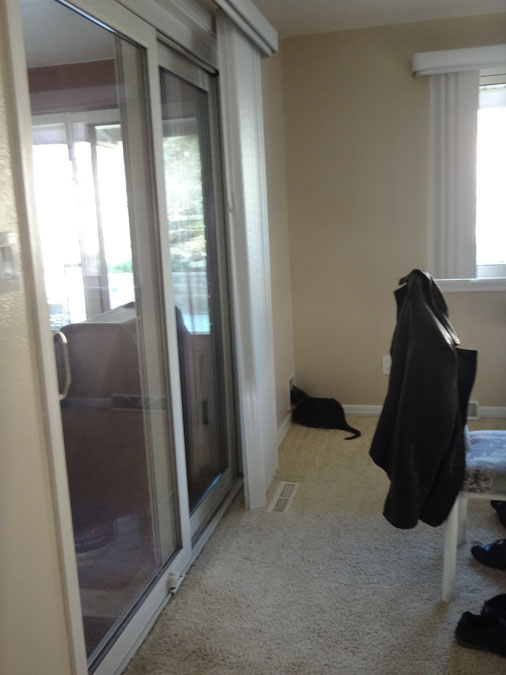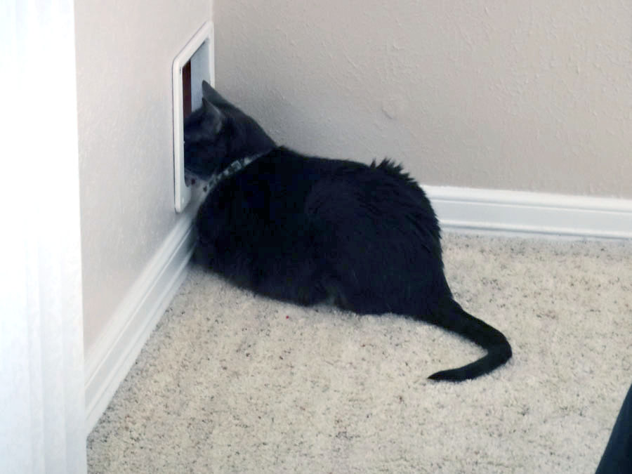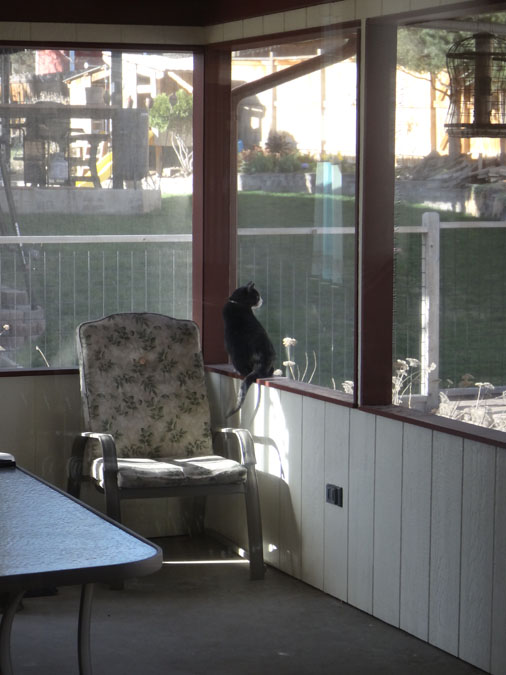 Cirrus wasn't sure if he wanted to go outside this morning, so he found a compromise... He did eventually go out on the patio.