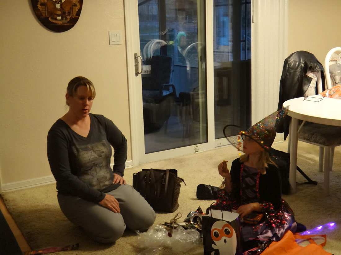 Rannae (Mike's sister) stopped by with our nieces - Valerie the witch and Madeline the Cheshire cat!