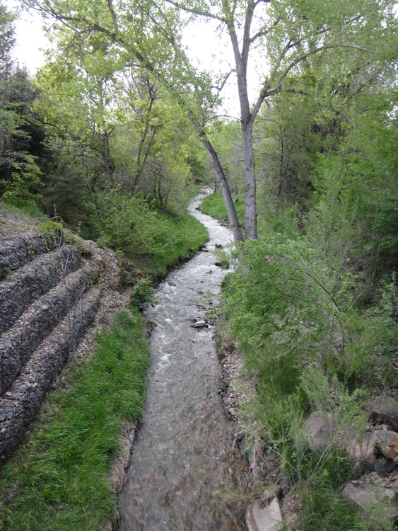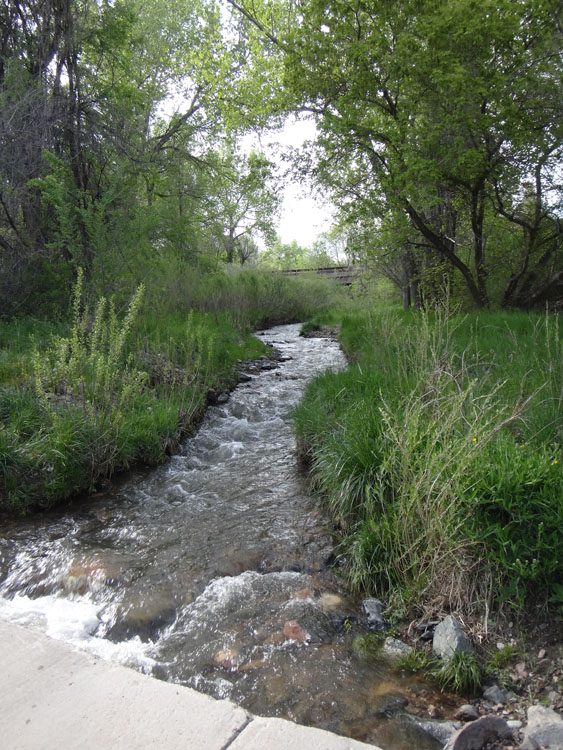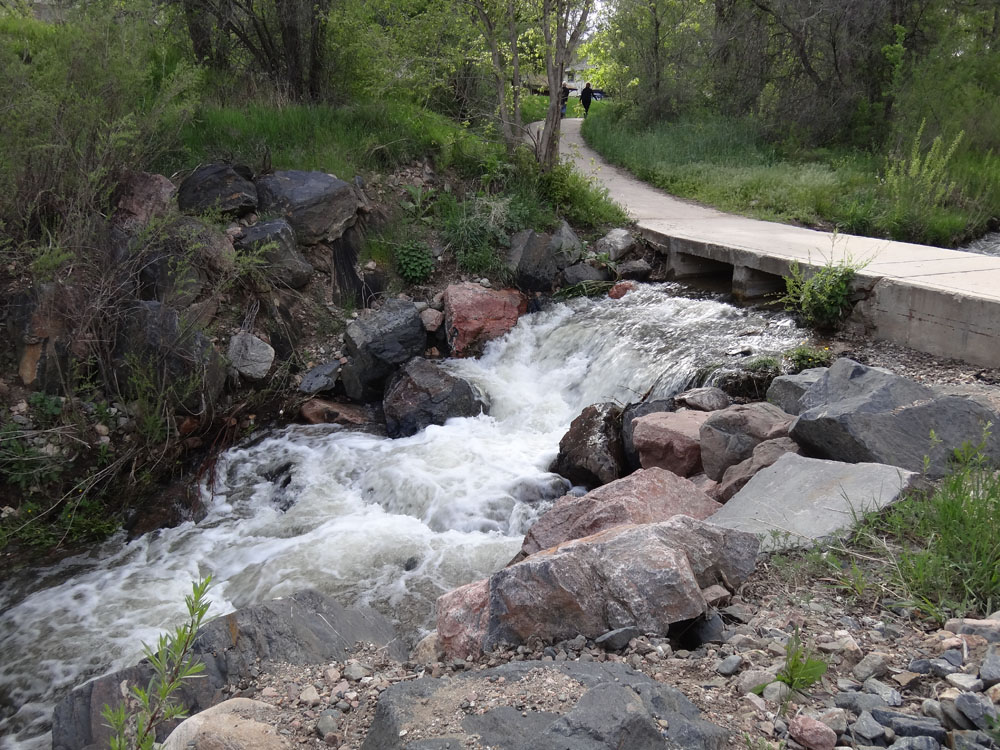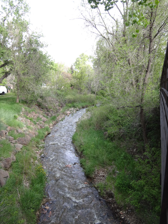 Video of water going under the pedestrian bridge in Tucker Gulch. AVI file, 4.7 Mb