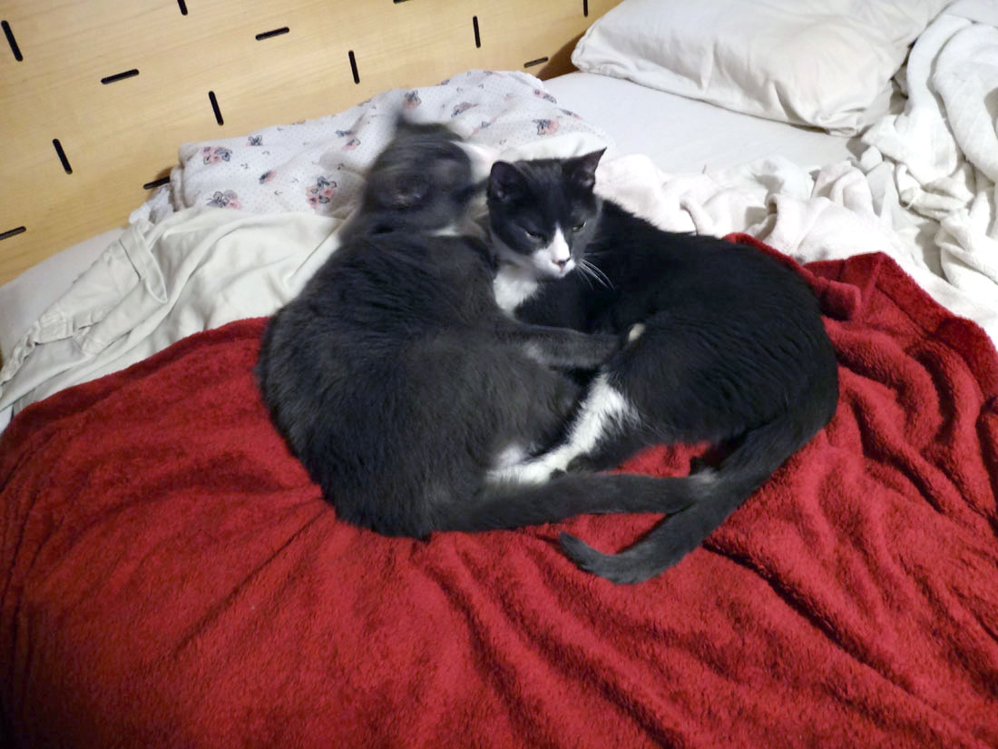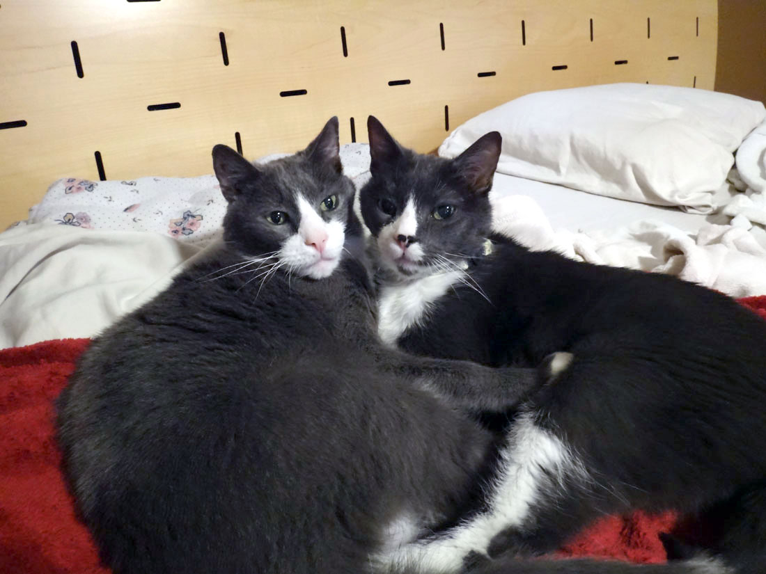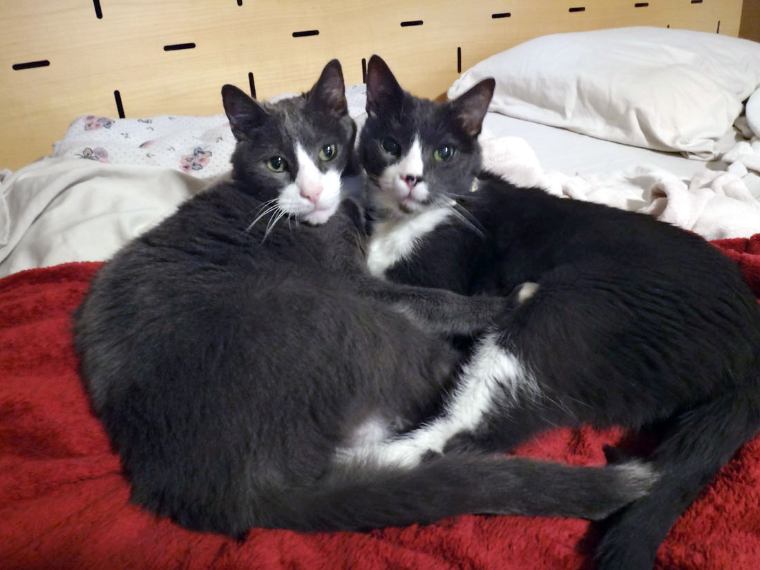 Muggins on the left with the pink nose, Cirrus on the right with the black and pink nose: