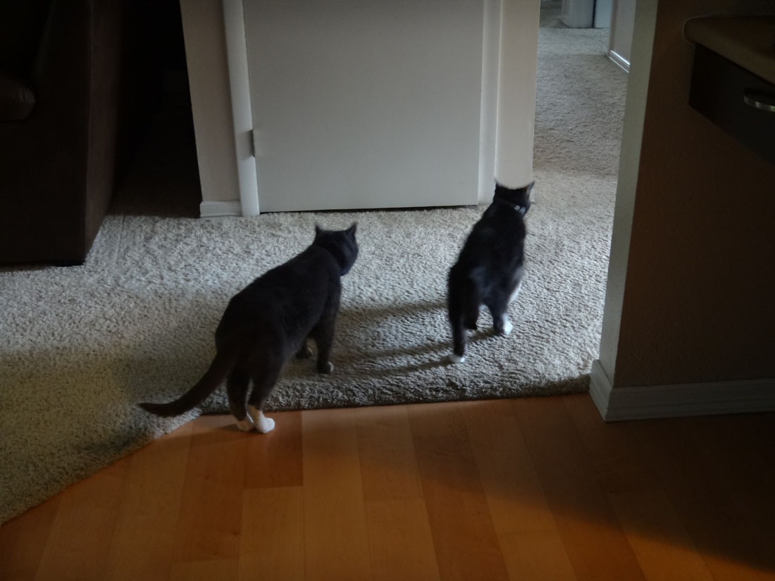 Meanwhile, inside the house, the cats know a party is afoot.