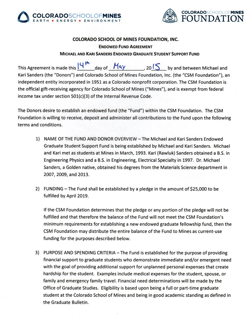 When the alumni office asked if we had ever considered doing an endowment, I could only think of the multi-million dollar kind...