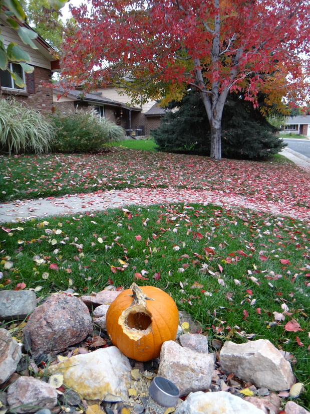 I came home a little early - loving the fall colors! A helpful squirrel cleaned out one of my pumpkins... if only he would do the other 2 - would make carving them go so much faster...