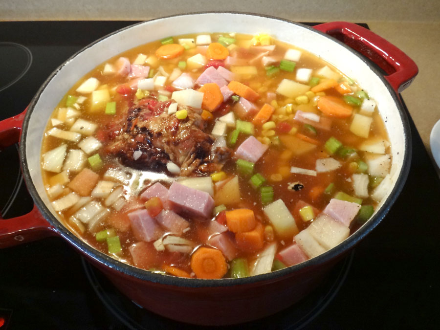 I started working on my entry for the "Cans Get You Cooking" campaign at work - this is ham bone soup.