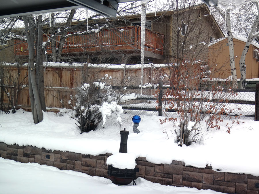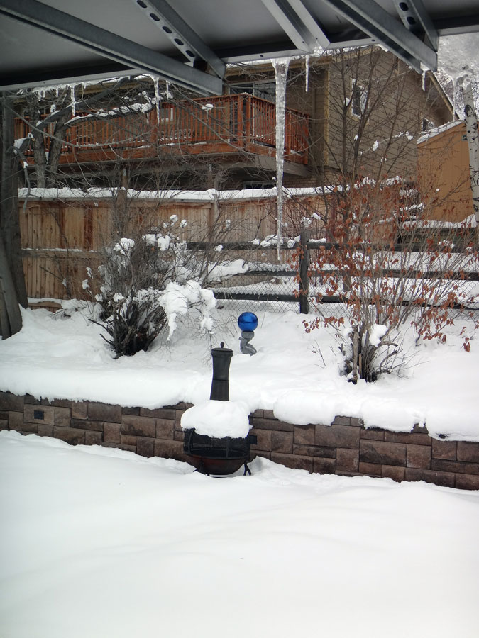 As the snow started to melt, a lovely icicle formed off of the solar panels! Cirrus is still tucked in for the winter....