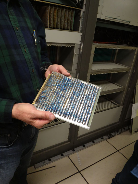 After seeing the operations center and the super computer, we took a trip down memory lane. This is a wire-wrapped board from the old system.