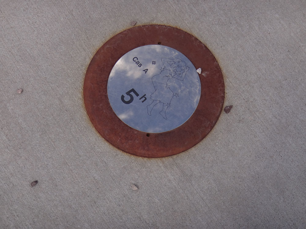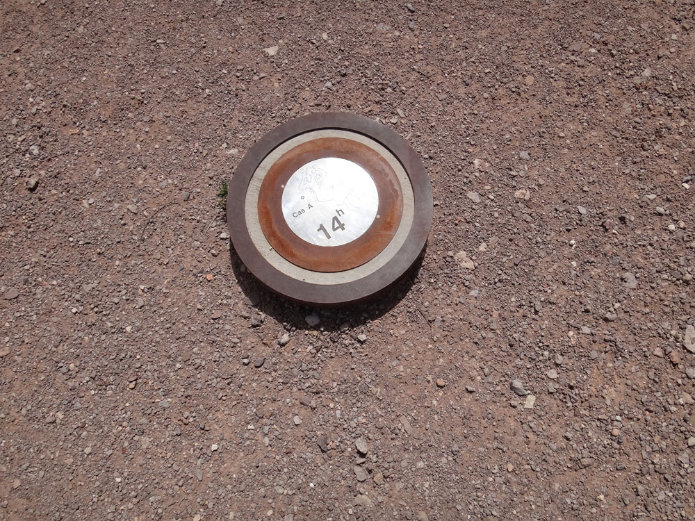 date commemorated on that marker. Other small markers are in the shape of dish antennas. When the sphere's shadow crosses these markers, it is solar noon