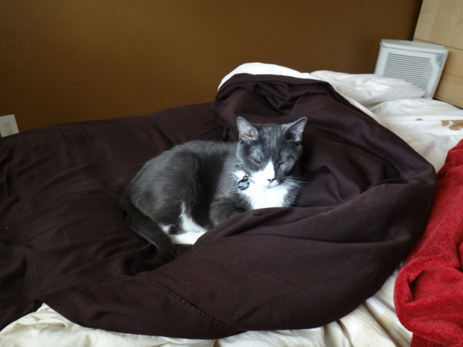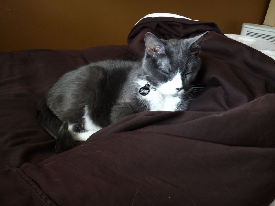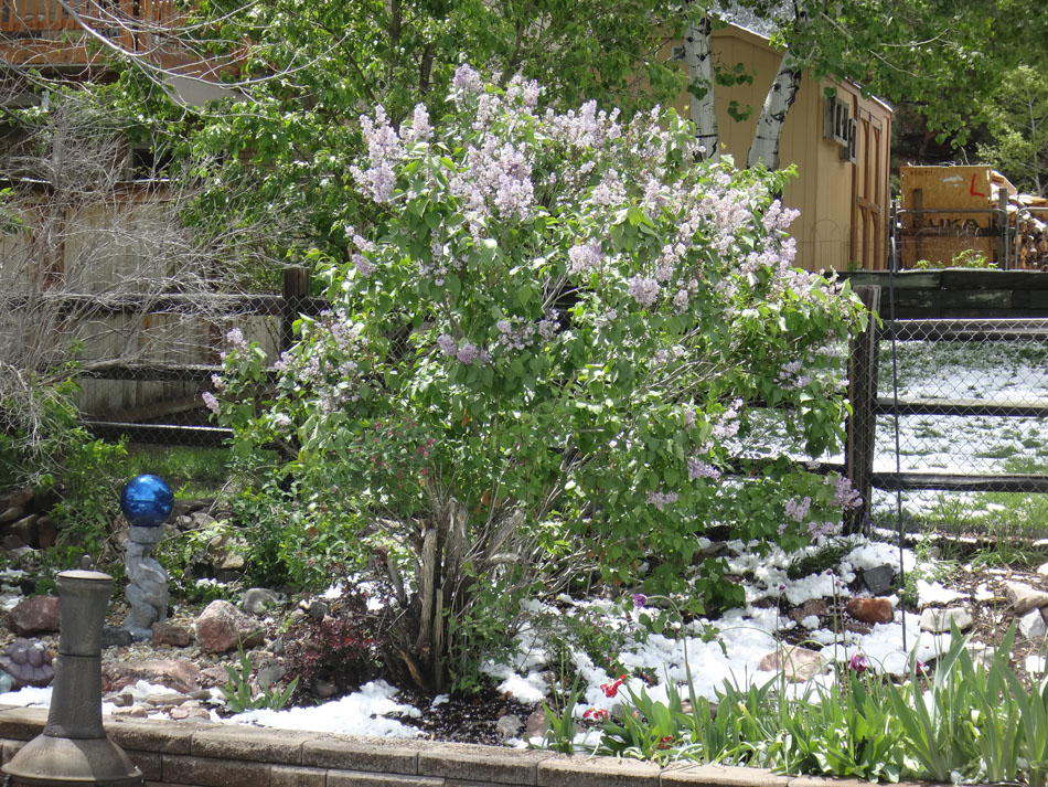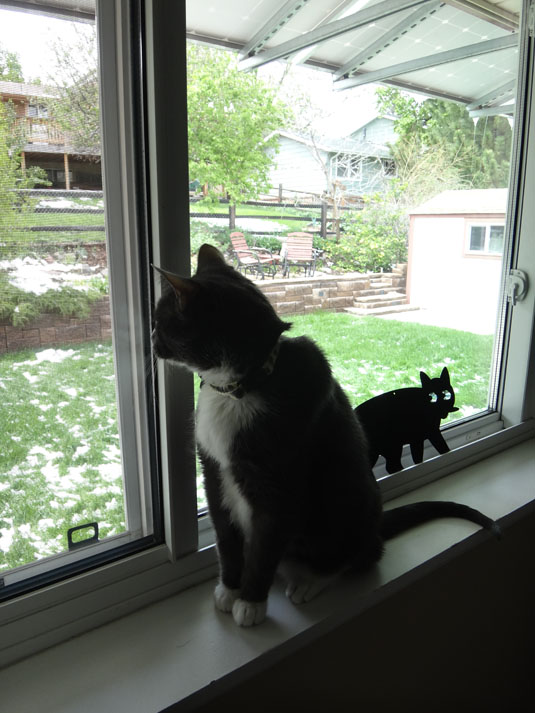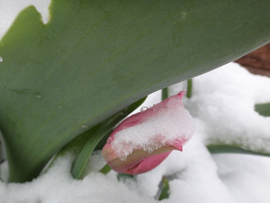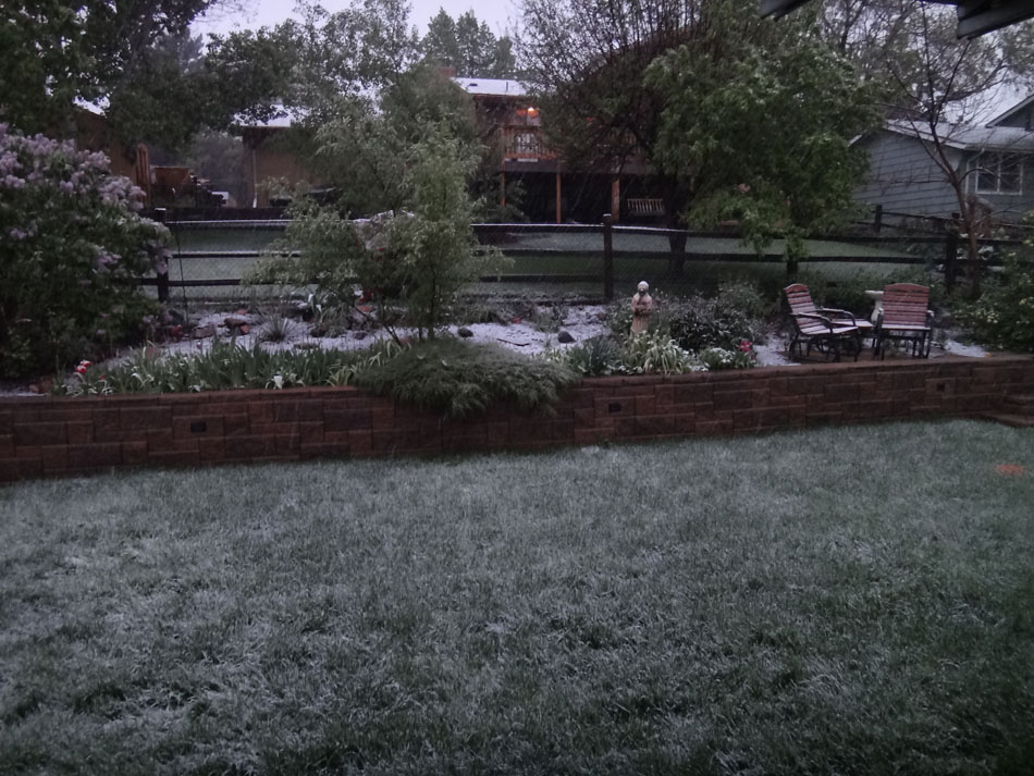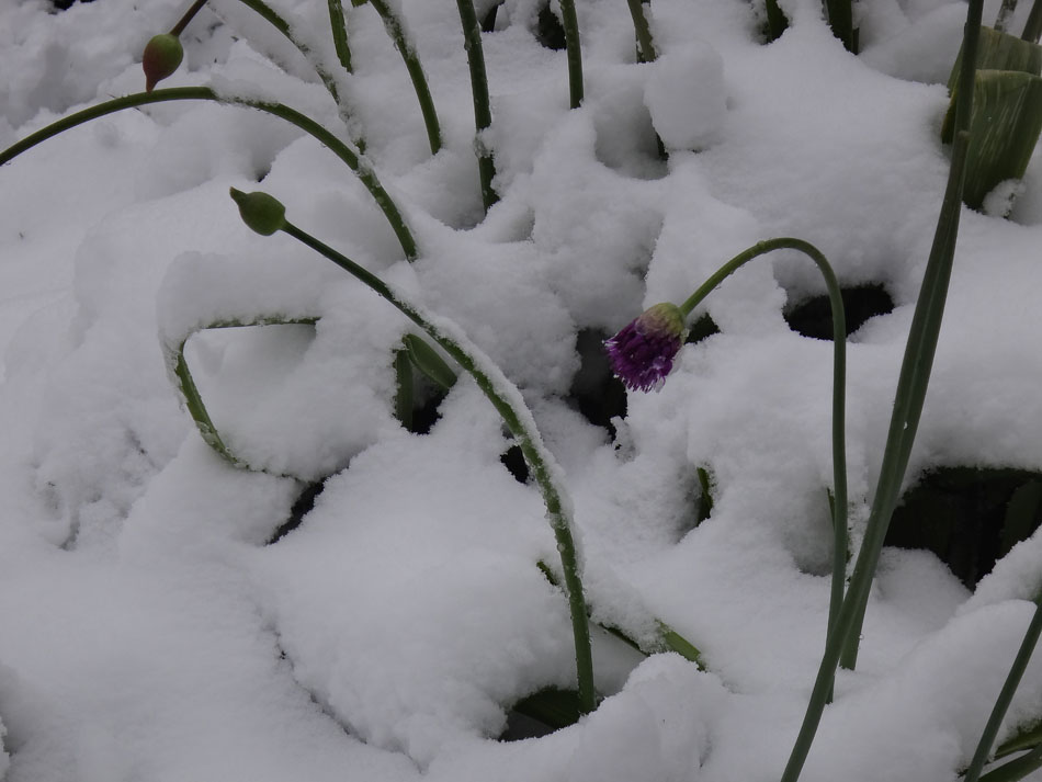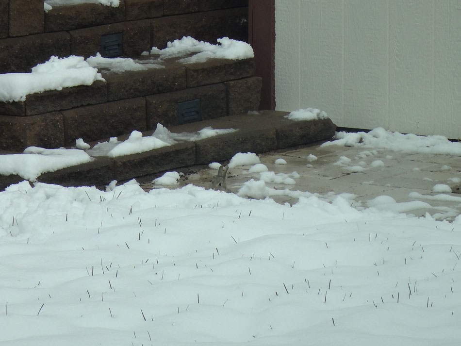 Sunday morning, there was less accumulation than we had expected, but it was enough to drive a baby bunny under the chair for shelter: