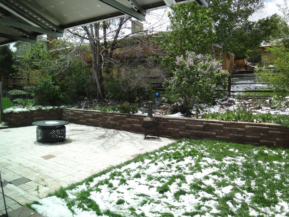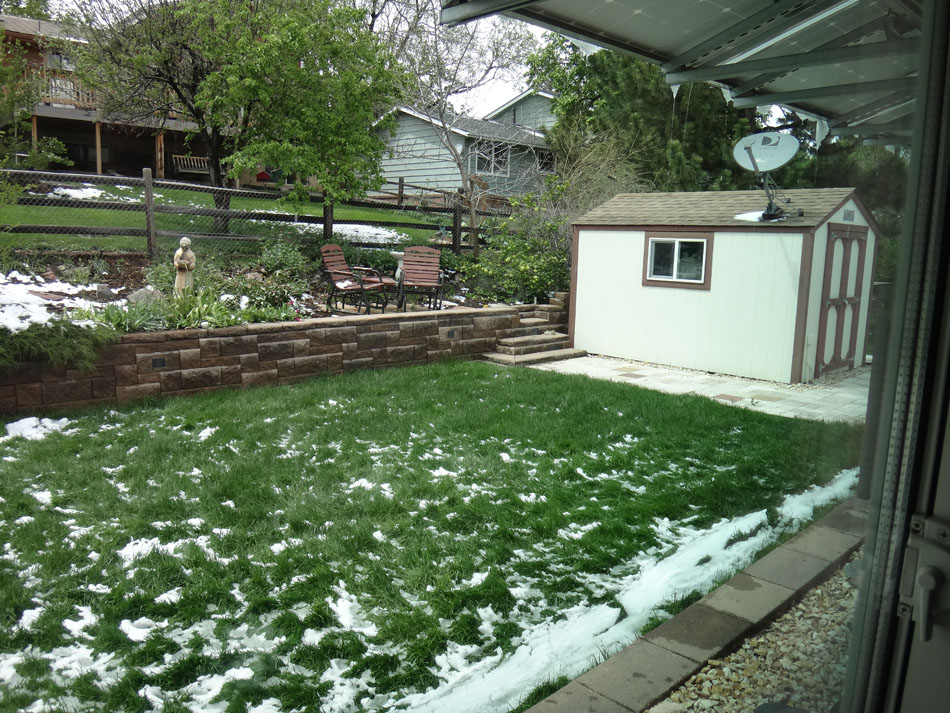Branches were bending under the weight of the snow, but thankfully, no breakage. Here's the back yard:
