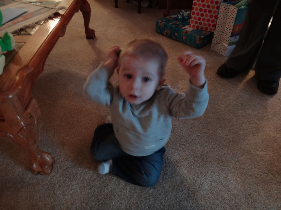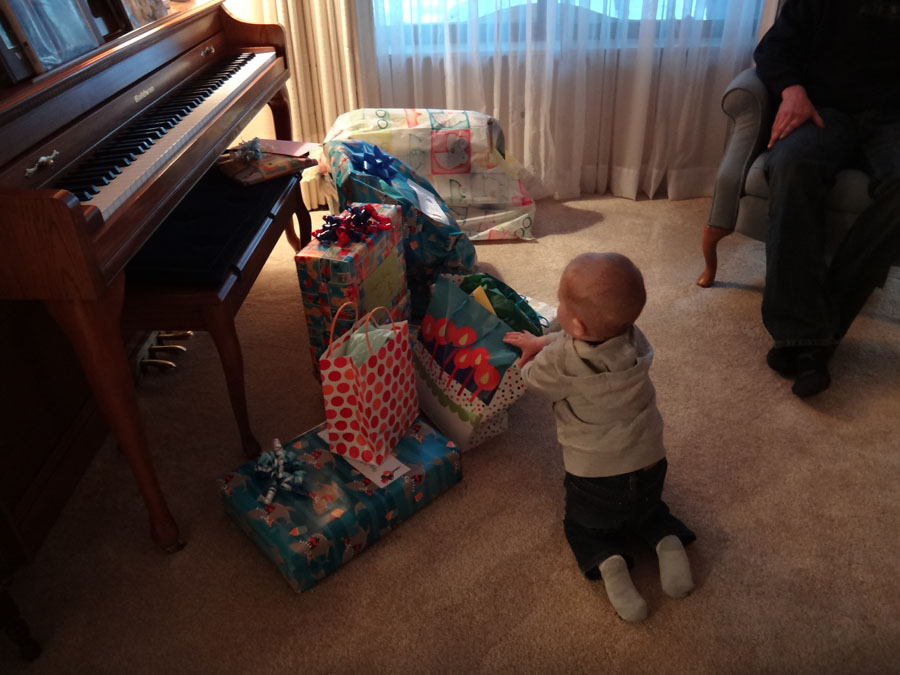 He decided he would like to open his presents sooner rather than later...