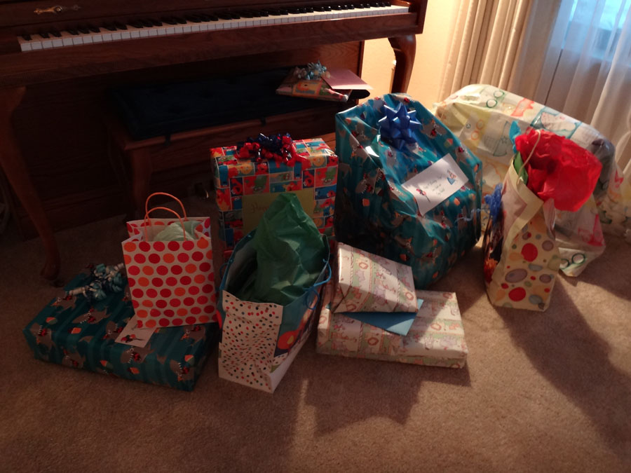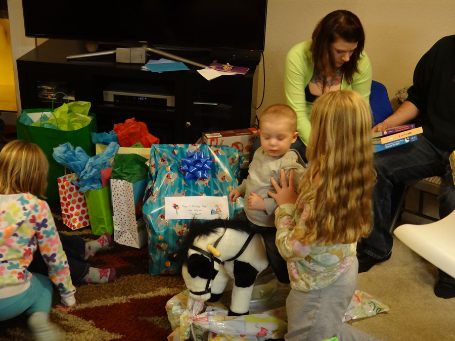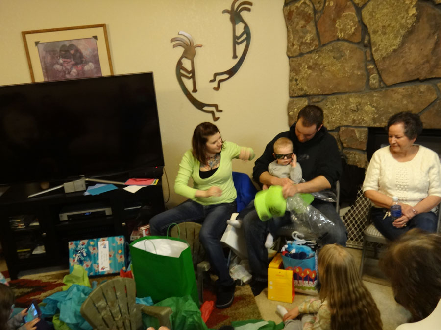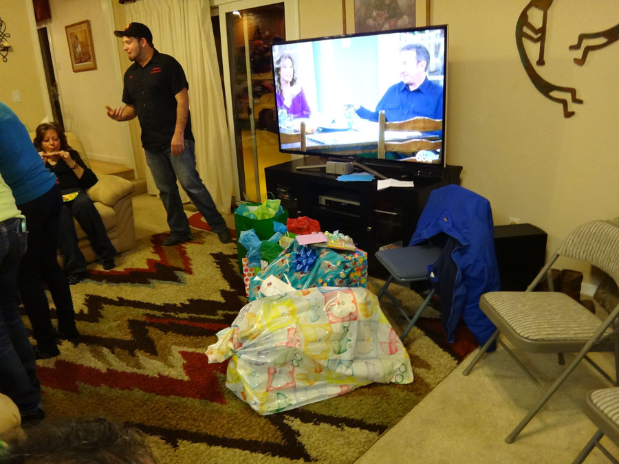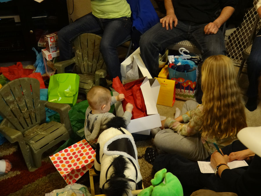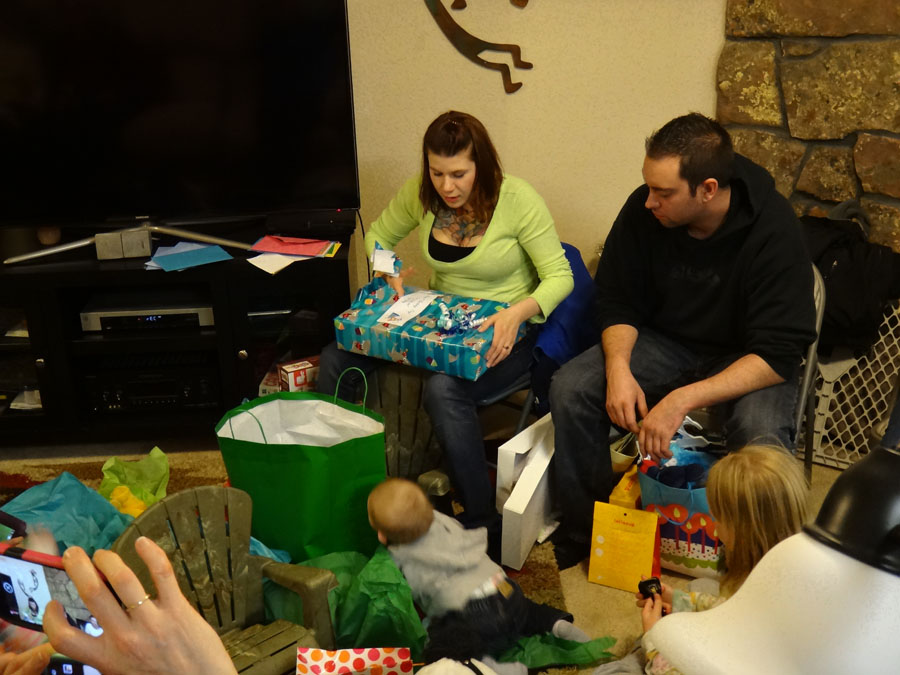 Opening gifts from Mike and I: