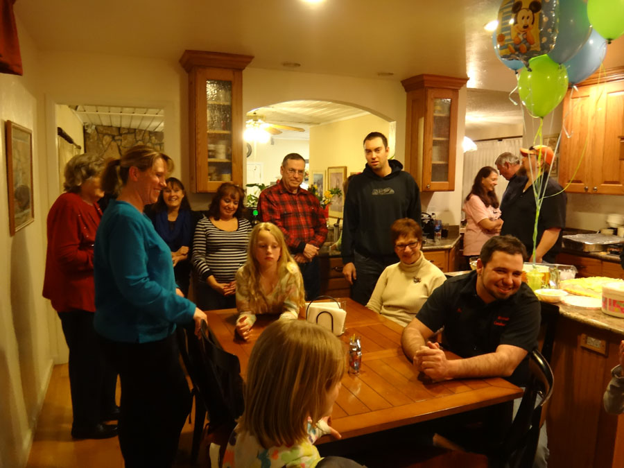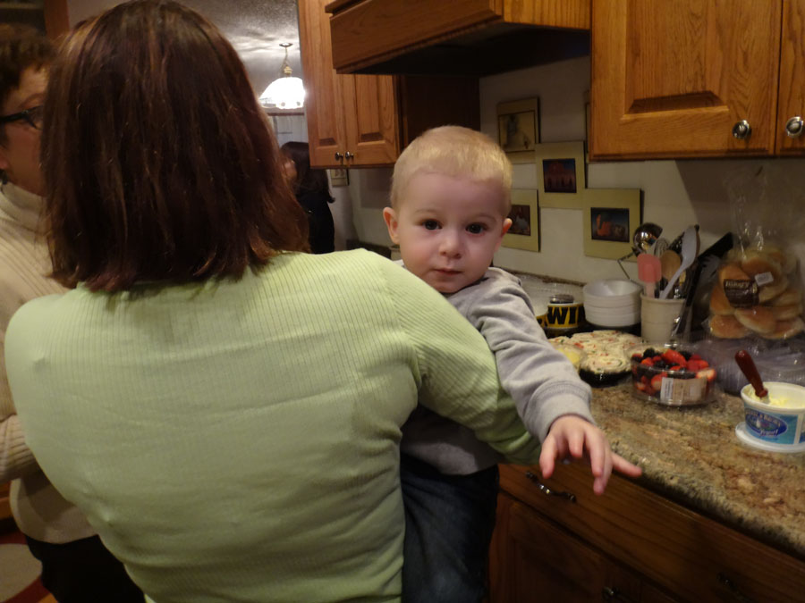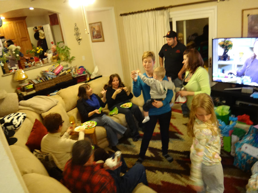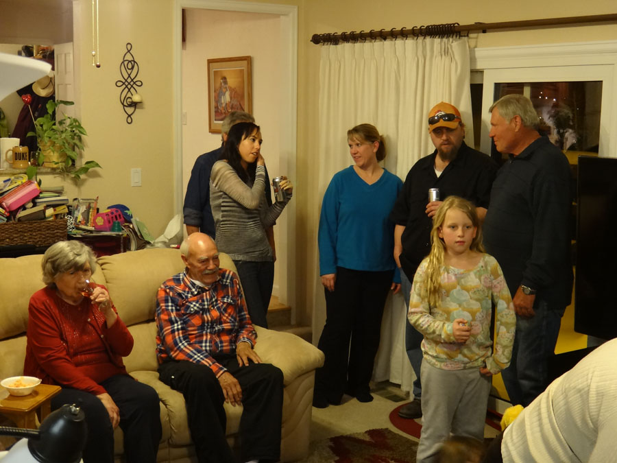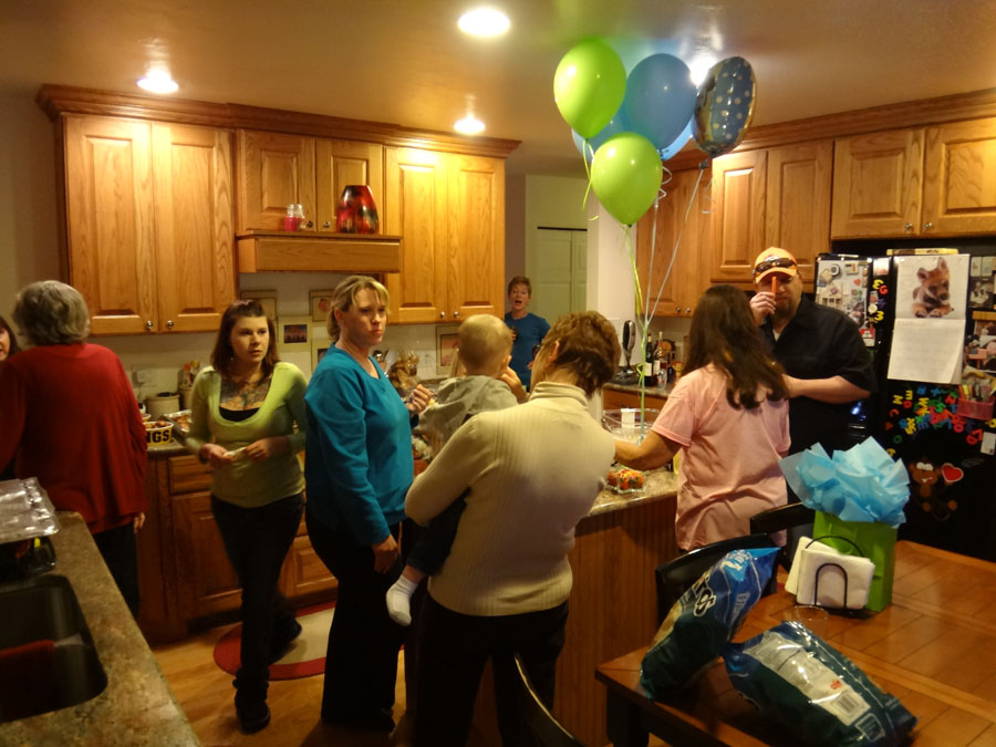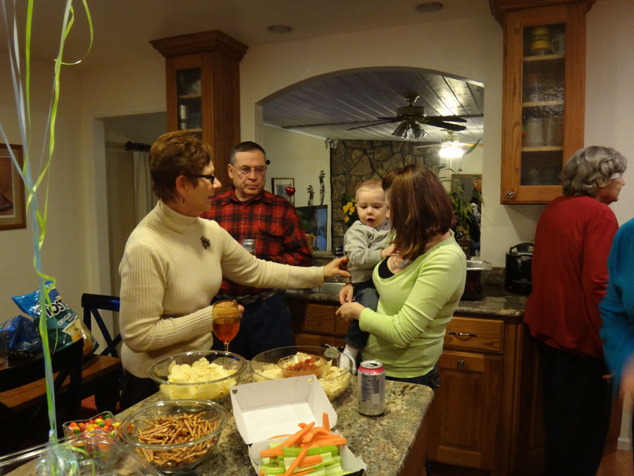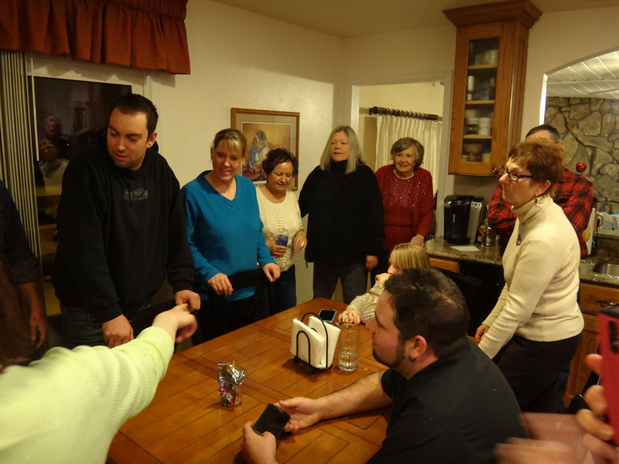 Hailey with Troy, Mike's Aunt Bella, (in the far back, Bella's son, Robert), Rannae with Maddie, Hailey's mom: