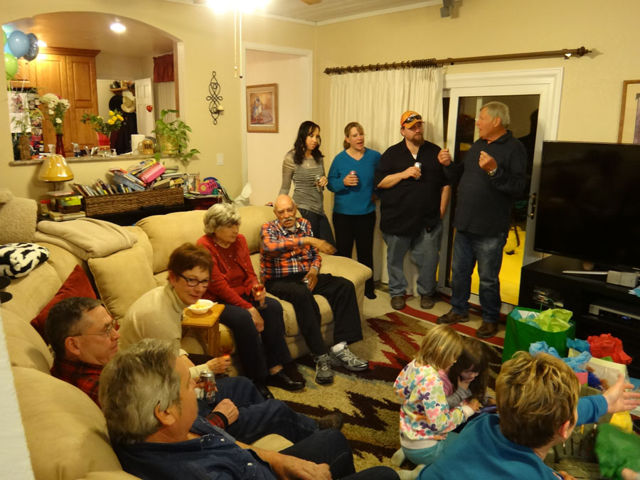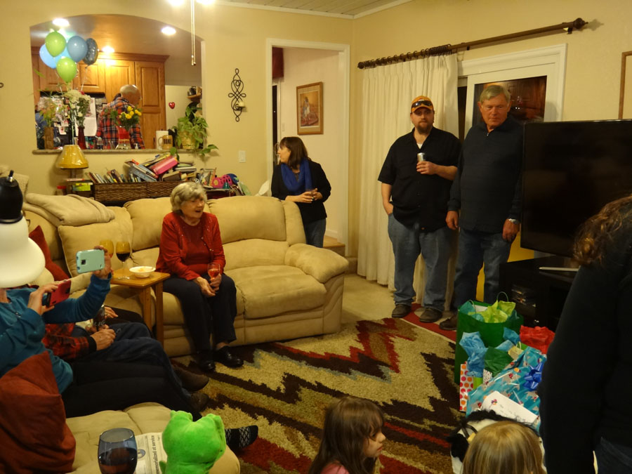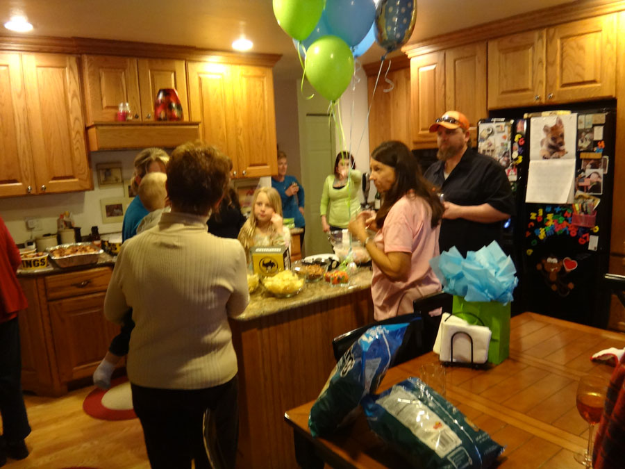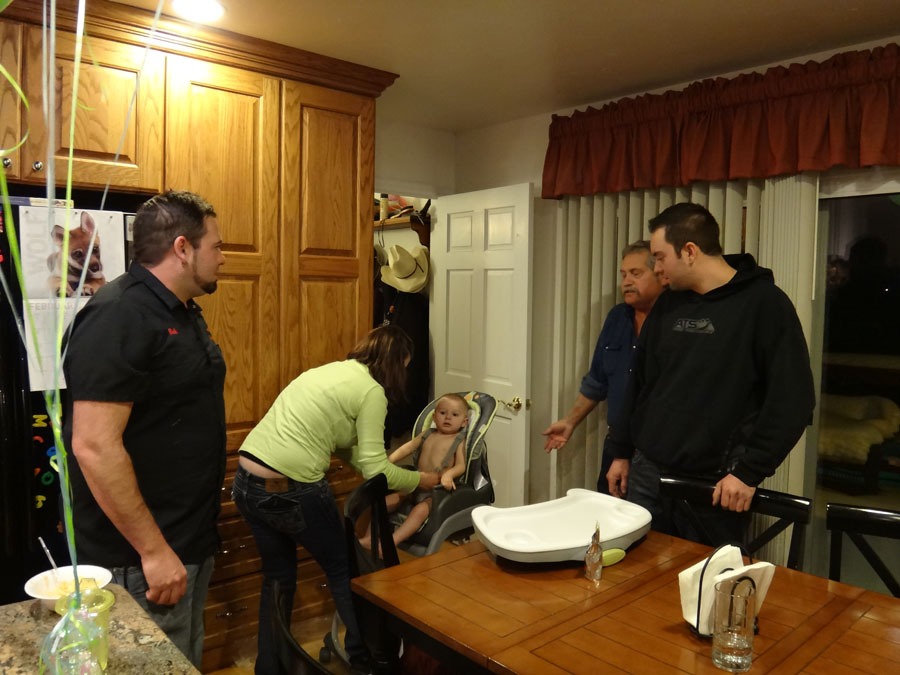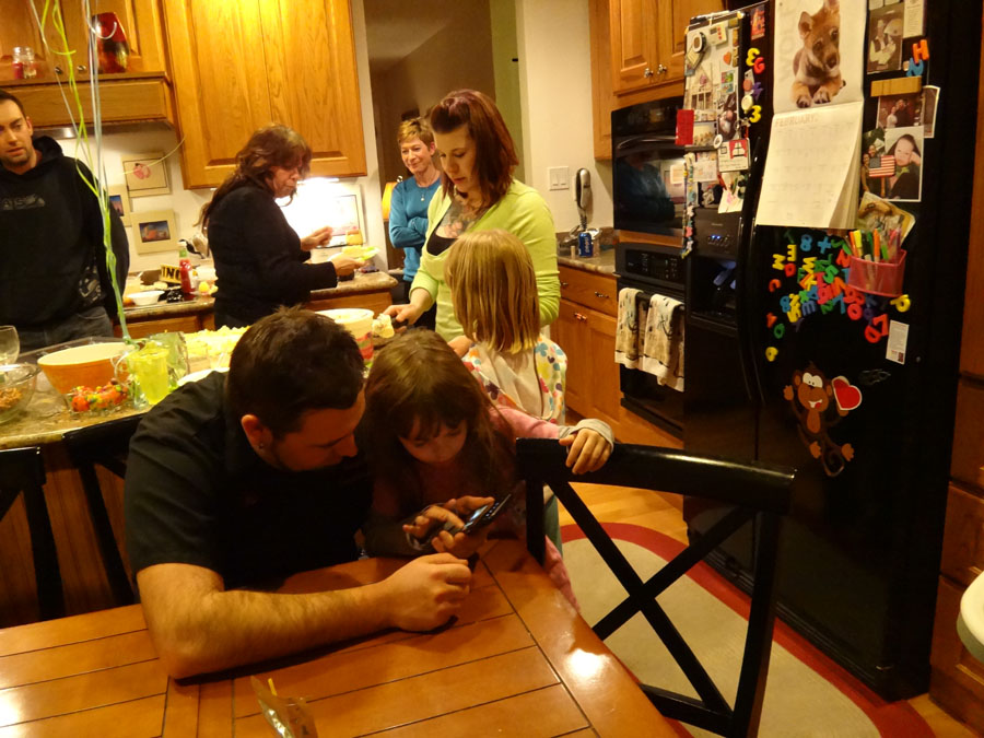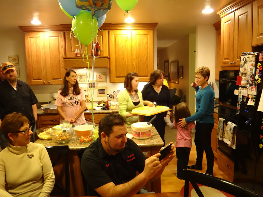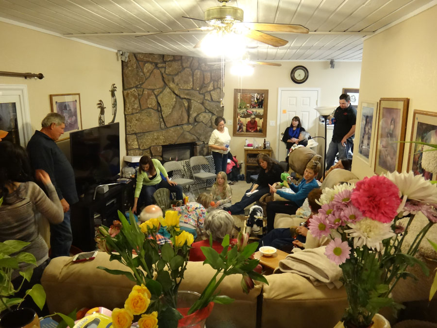 Hailey with Troy, Mike's Aunt Bella, (in the far back, Bella's son, Robert), Rannae with Maddie, Hailey's mom: