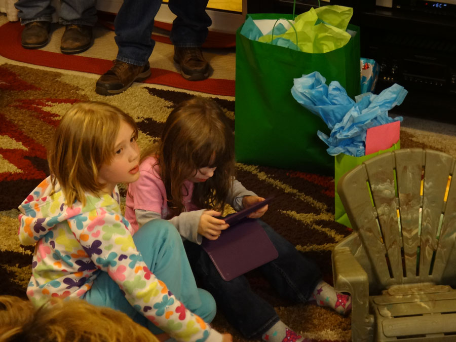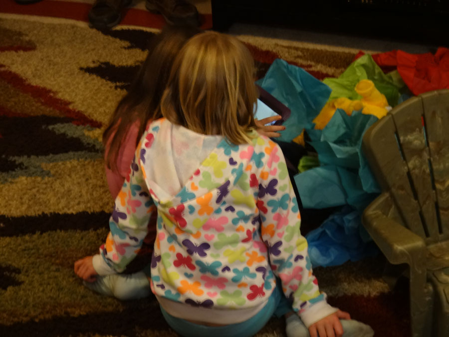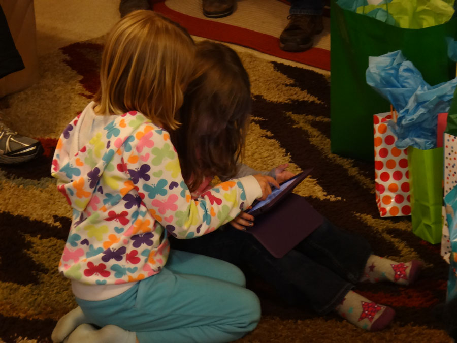 Clara and Valerie with Bella's iPad: