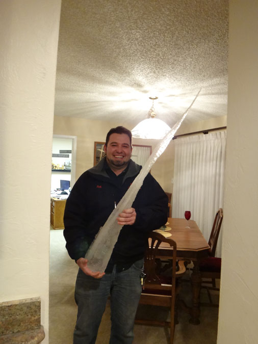 Robert found a huge icicle outside!
