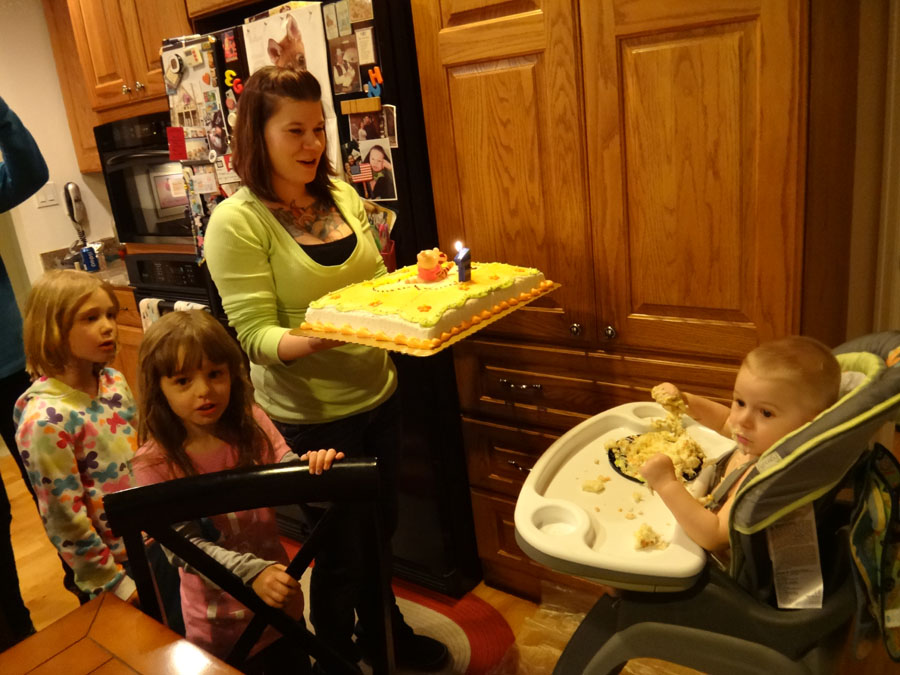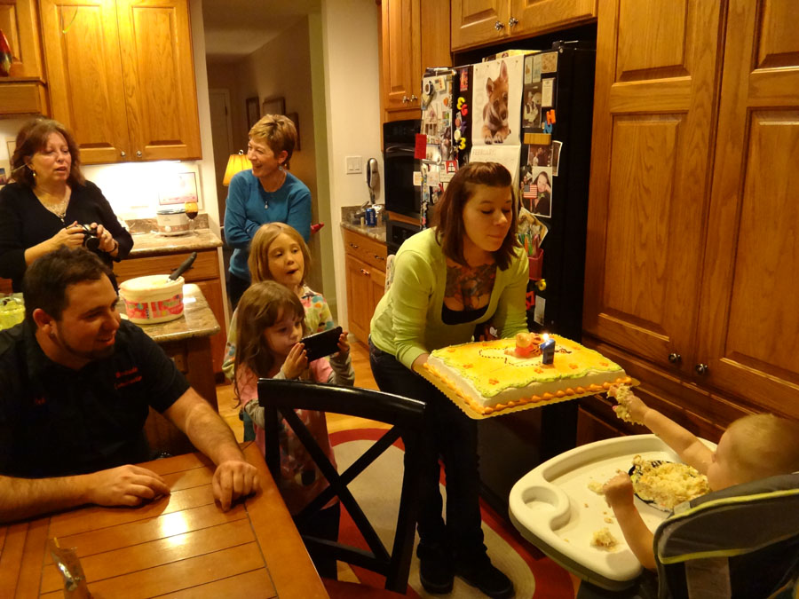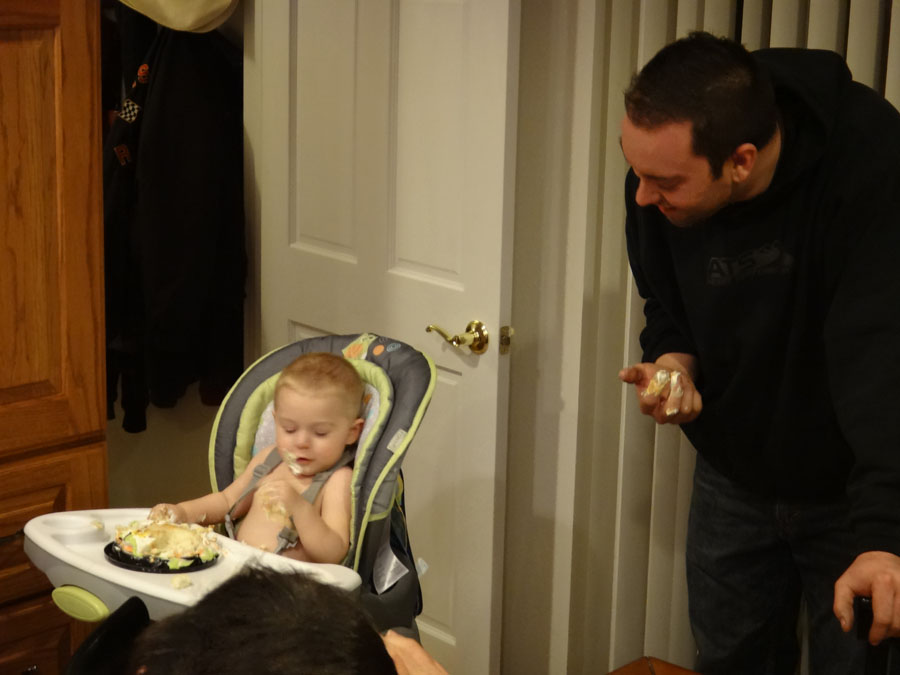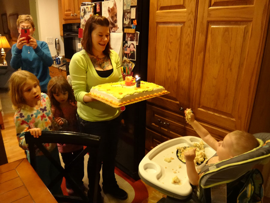 I went to his birthday party at Mark and Bella's house (his grandparents. Mike was at the Nuggets game). Here's his cake!