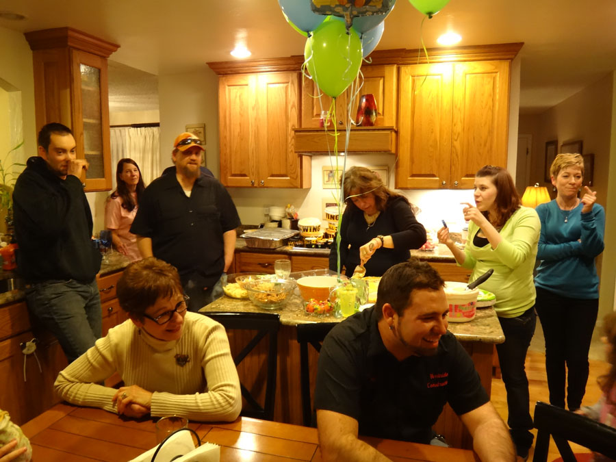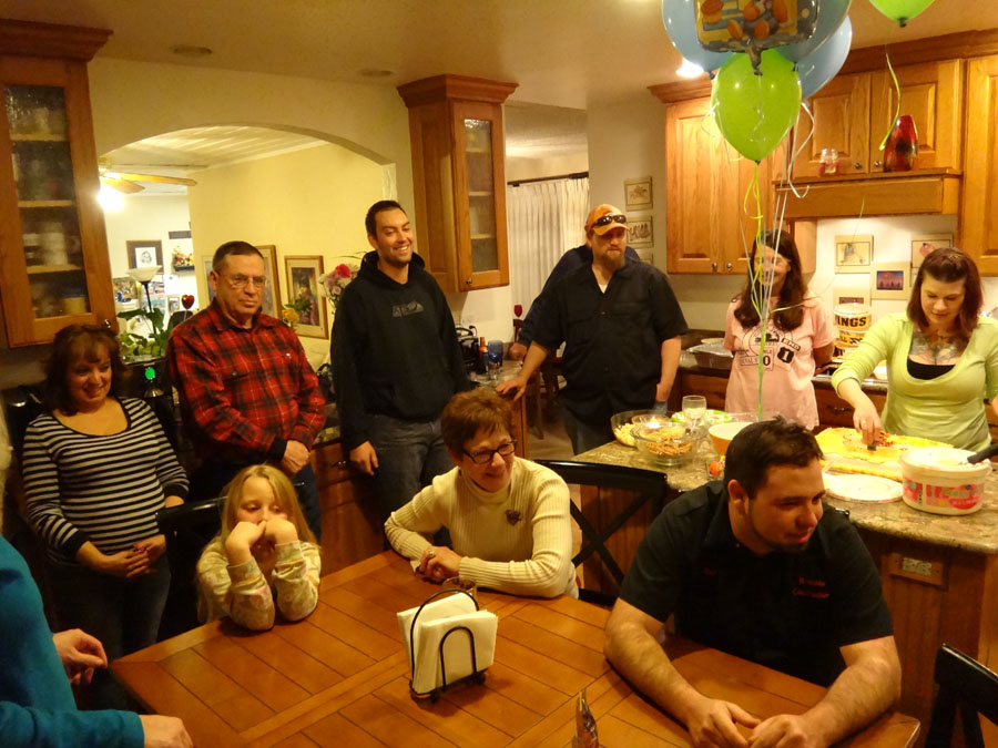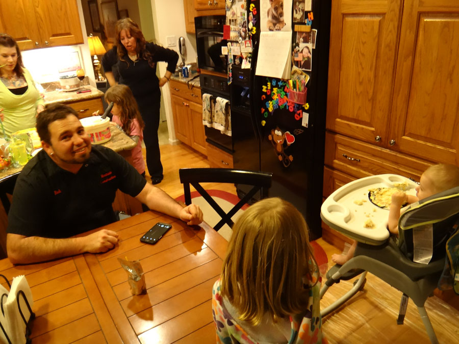 Troy with Hailey's grandma, Gwenn Sanders (Mike's mom), and hiding behind a carrot, Rannae's hubby, Rob.