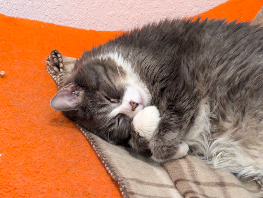 I was working from home and she flopped on the floor this afternoon, staring into space, struggling to breathe. I picked her up to see what was going on.