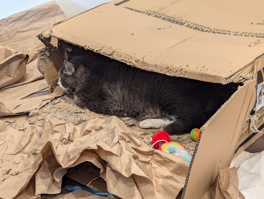 When I set her down, she took a few steps towards her box, flopped down and started doing the same thing.
