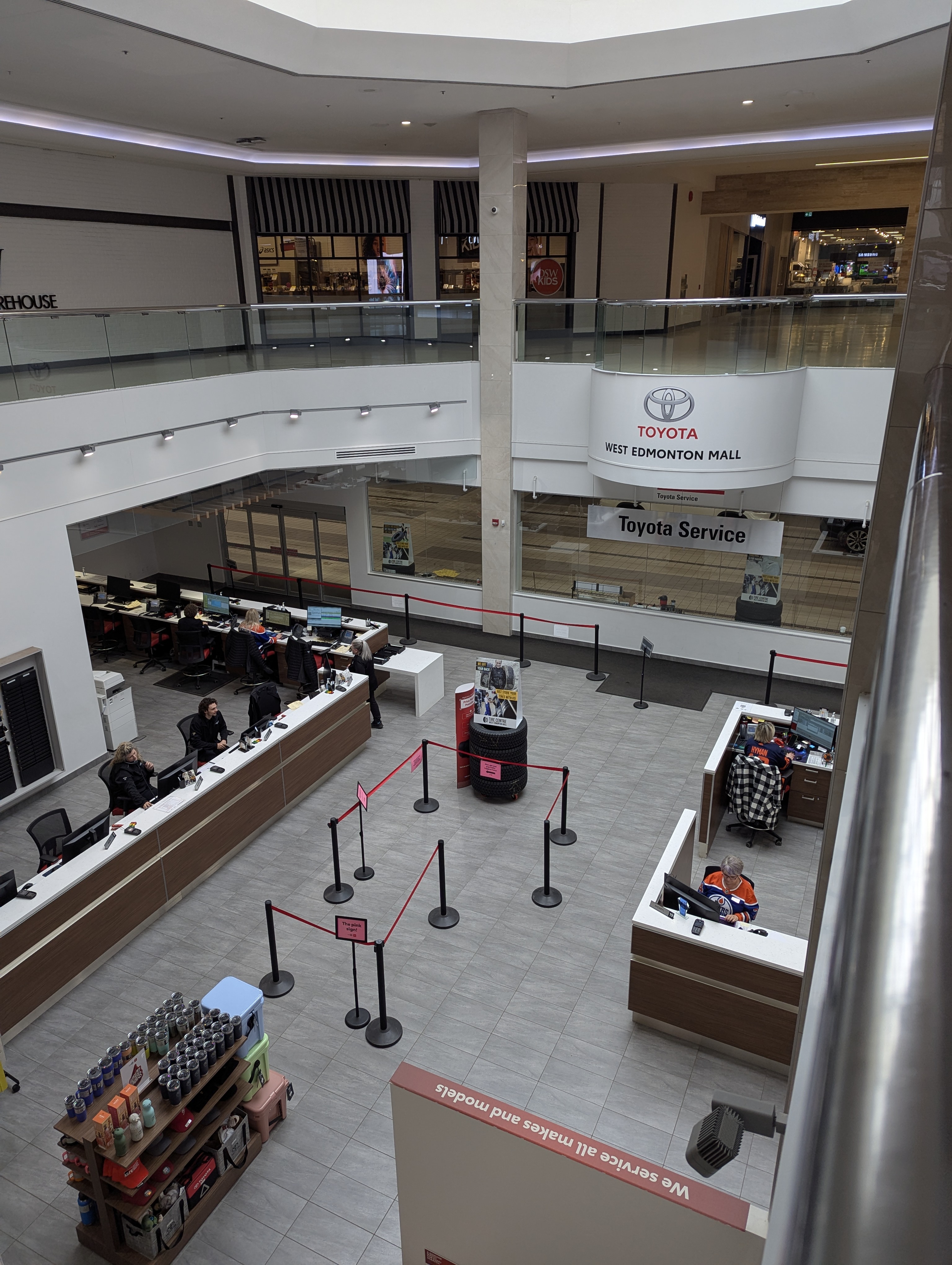 There is a Toyota dealership complete with service garage and a car lot in the mall: