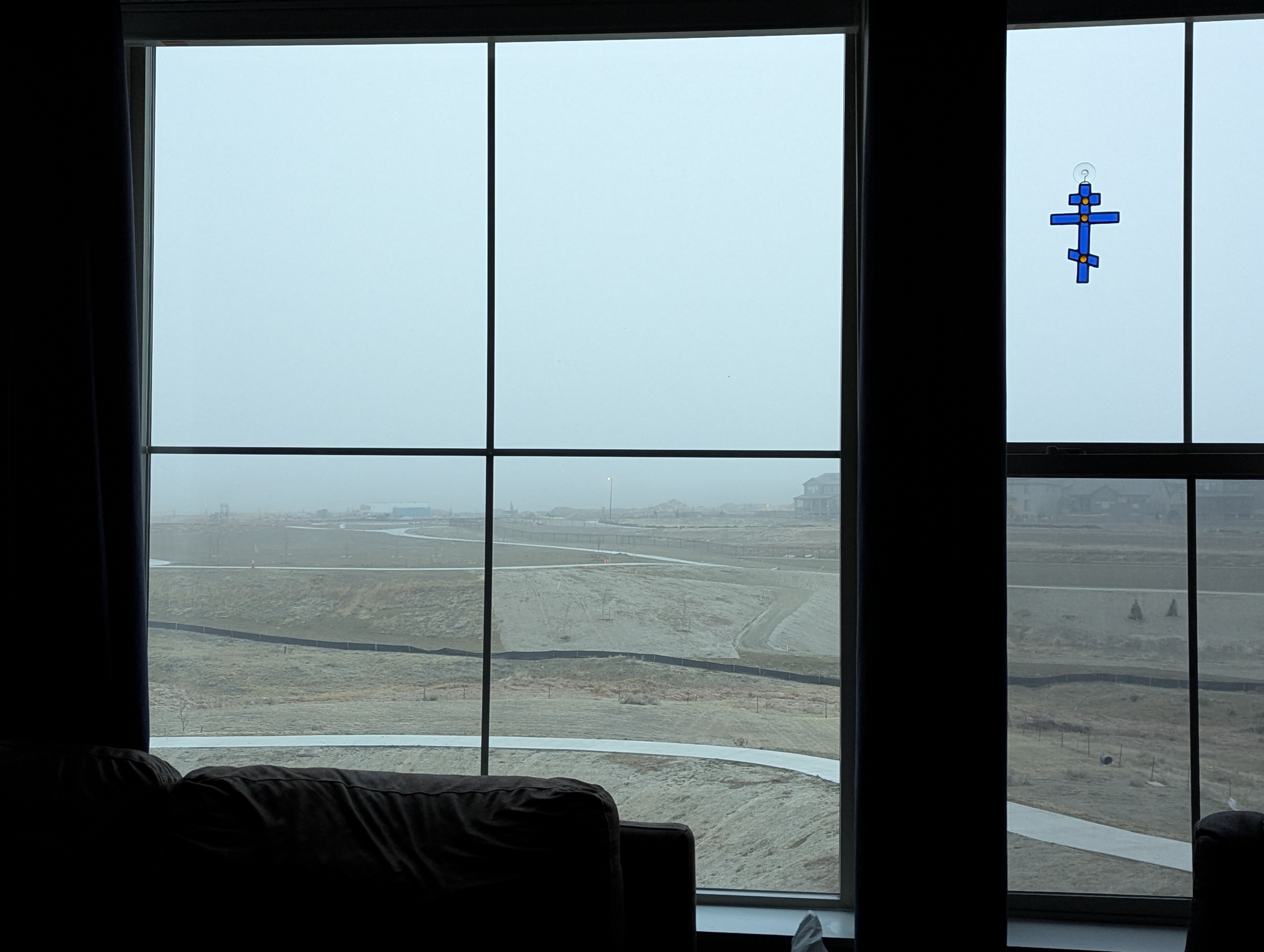 Cloud pictures in the days before the snow...The blue cross was something my Great-Aunt Mary bought for her mom.