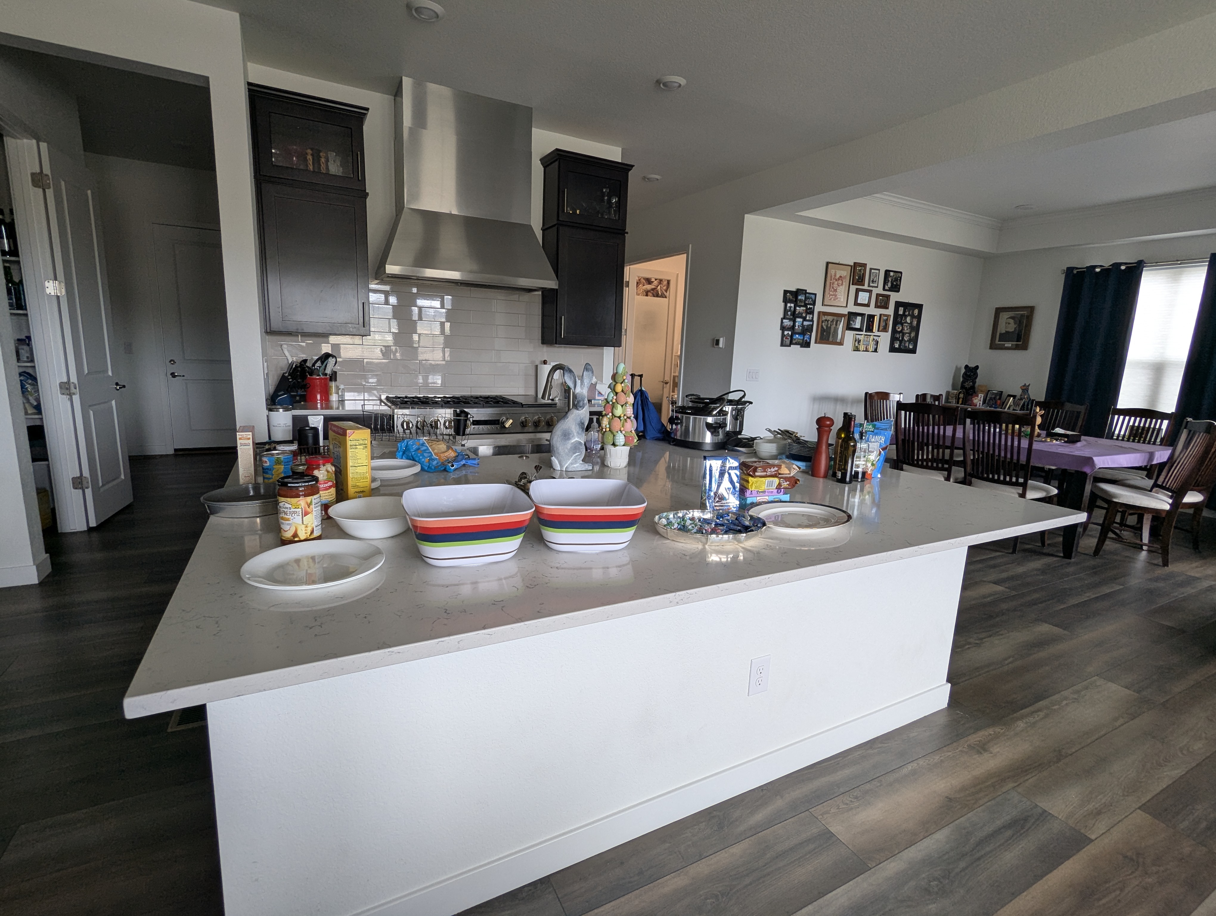 Beautiful day, so I set up the deck. Jessica arrived early, and we enjoyed some deck time before everyone arrived for dinner.